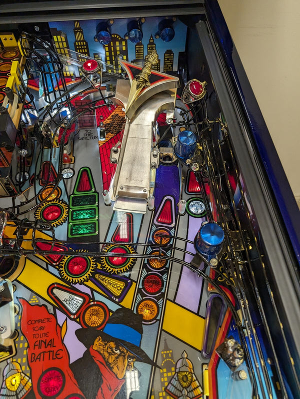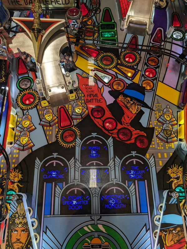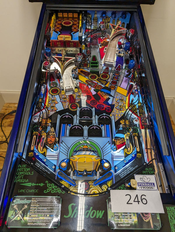 With The Shadow, Bally pinball recalls the atmosphere of mystery, suspense, danger, and romance that made the Shadow a classic 30's radio series the modern movie an adventure. Many of the movies memorable scenes are captured in the game and on the display, with clips from the movie, custom audio from some of its stars, and iconic images everywhere!
