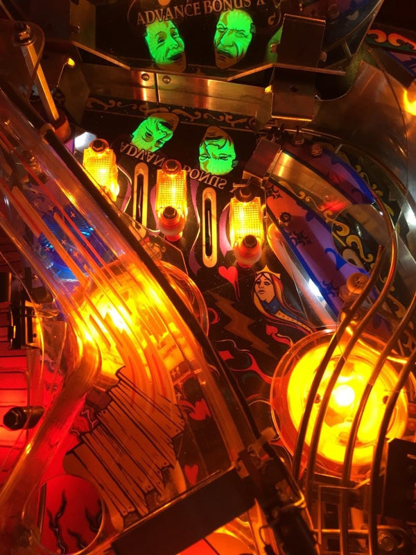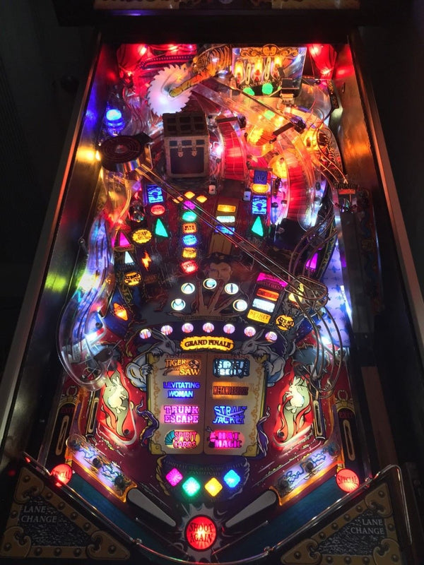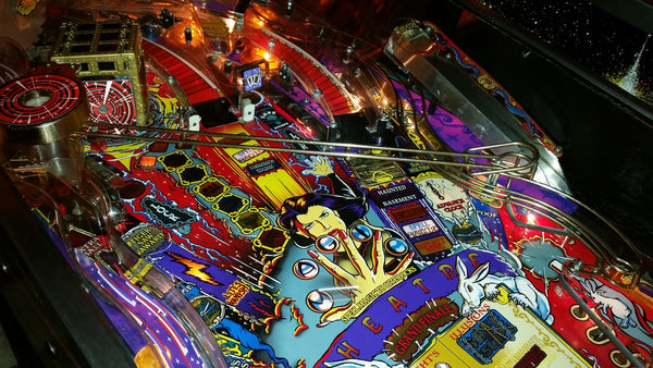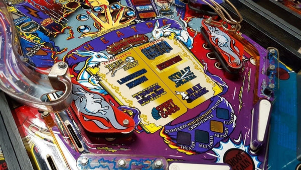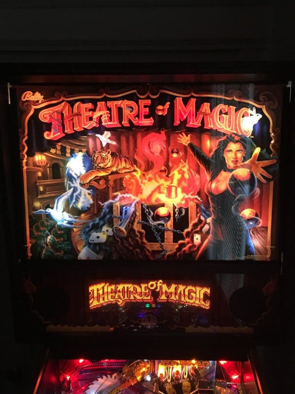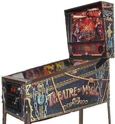 Theatre of Magic is a pinball machine from March 1995, manufactured by Bally Manufacturing Co. This game was designed by John Popadiuk and features many of his design staples such as magnets, a bash toy, and elaborate ramps. Theatre of Magic is based on an unlicensed magic theme where the goal is to perform eight different magic tricks and then complete a rather simple wizard mode. There are numerous side goals such as spelling "Theatre" and advancing the clock to Midnight Madness (not to be confused with the midnight madness featured in some other Bally/WMS games), as well as a video mode featuring a virtual pinball game.