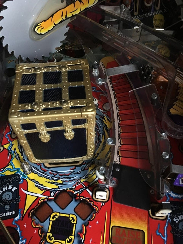 Notable features of this game include the prominent bash toy, dubbed "The Magic Trunk", which starts game modes as well as multiball, and plays a role in many of the aforementioned modes. There is also a machine-controlled magna-save feature placed over each inlane, as well as a magnetic ring that picks up the ball and moves it from one ramp to another. Finally, there is a hidden scoop that pops up from the playfield in a manner similar to the trolls in Medieval Madness, which releases balls shot into the crate and locked balls for multiball, as well as giving a mystery award during normal gameplay.