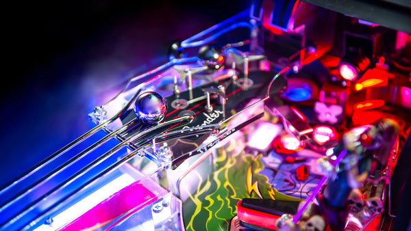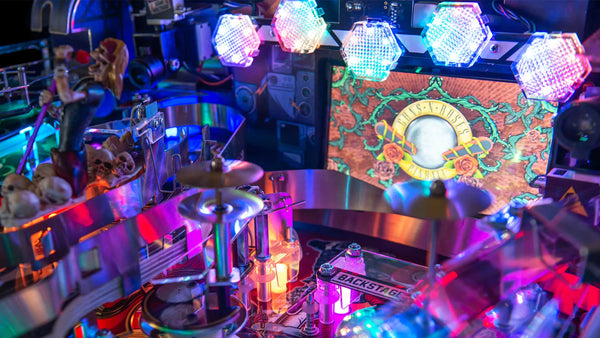 A playable work of art, the Guns N’ Roses pinball game merges the latest in sound, video, and design with groundbreaking new technology, elevating classic American Pinball to an immersive, one-of-a-kind experience. The kinetic game brings together the band’s powerhouse live performance, signature sound and wild stage elements, all from their colossal Not In This Lifetime world tour which is now the third highest-grossing concert outing of all time. The concert experience brings the game alive with hundreds of interactive LED lights and multiple LCD displays, players rock out while 21, full-length studio master tracks from Guns N’ Roses blast from the 120 Watt, 2.1 stereo sound system, giving fans a front row seat to custom animations and hours of Not In This Lifetime tour footage. It takes roughly 1.5 million dollars to conceptualize and create a pinball game, gathering engineers, artisans, sculptors, programmers, as well as vendors to create all the wood, steel, and glass parts for the game.