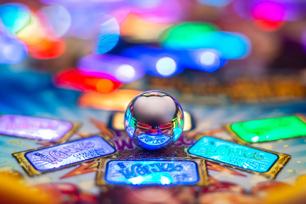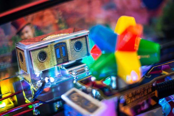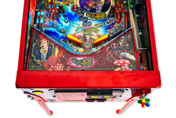 All models of Willy Wonka and the Chocolate Factory™ pinball include four flippers, six balls, seven magnets, the Everlasting Gobstopper™, the Most Secret Machine™, Oompa Loompa™ camera sculpture, 7” Wonkavision™ LCD, a 27” HD LCD screen with interactive 3D animations, and candy-colored LED light shows. Gameplay features four multiballs, collecting Wonka Bars™, spelling Scrumdiddlyumptious™, touring Wonka’s Factory™, and a host of other goodies to lead you down the chocolate river to three wizard modes, including Pure Imagination™.