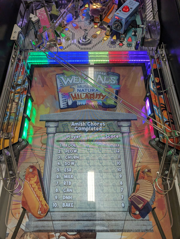 Weird Al’s Museum of Natural Hilarity is designed as a5-flipper game(lower flippers, both side target flippers, and a pre-installed flipper on the playfield module’s second level).