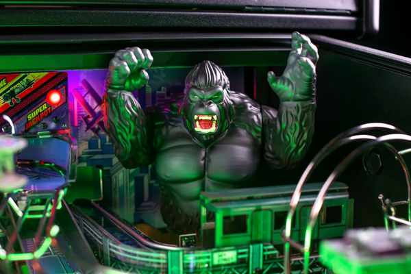 Inspired by the original novel, King Kong: Myth of Terror Island takes players on a wild adventure with Ann Darrow, Jack Driscoll, and Karl Denham, from the dangers of Terror Island to the havoc of New York City. Packed with thrilling features like an animatronic King Kong that reacts to gameplay, a destructible train car for multiball madness, and hazards like the spider-guarded Pit and helix-shaped biplane ramp, this game is a nonstop action experience. Players will unlock secrets of the Lost Temple, survive Kong’s punch-back target, and enjoy original art, animations, music, and voice work from Brian "Q" Quinn of Impractical Jokers. From the creative team behind JAWS, Godzilla, and Jurassic Park, this four-flipper adventure delivers a truly legendary pinball journey.
