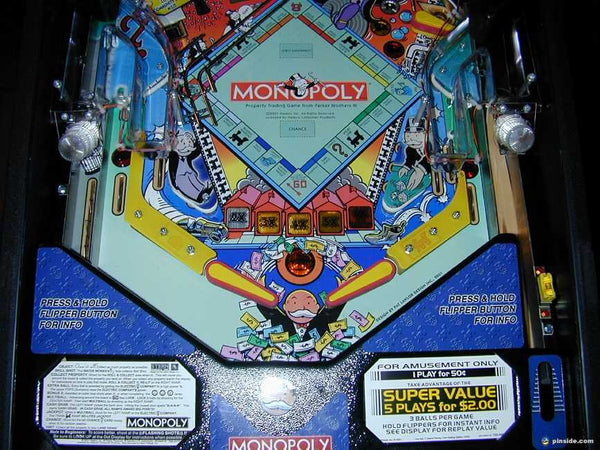 Some of the MONOPOLY® pinball machine’s classic features include: an Electric Company billboard, a bi-directional, rotating mini-flipper in the Water Works, and a Ride on the Railroad ramp. Also, you can take a lesson from MR. MONOPOLY®and break the Bank, start the cash grab, and shoot the upper ramps for bigMONOPOLY® points. The goal of the MONOPOLY® pinball machine is to move your piece around the game board, collect properties, and lock balls. When you pass GO, multi-ball will start and you can become the millionaire you’ve always dreamed of being!