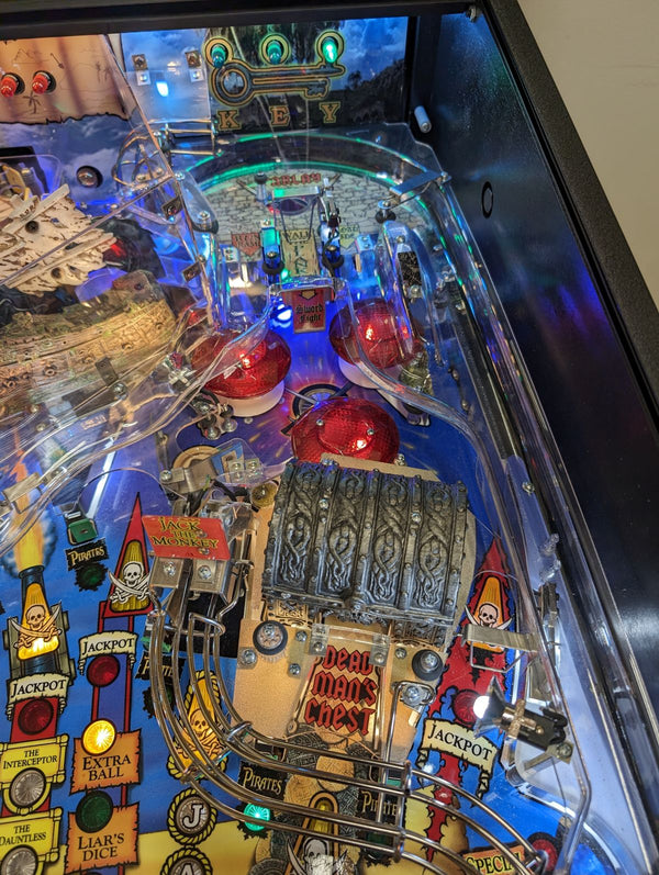 - A mechanical treasures chest, the Dead Man’s Chest, through which the player can shoot the ball. When the player has the KEY, the chest opens. They can then spell H-E-A-R-T to begin HEART multi-ball.