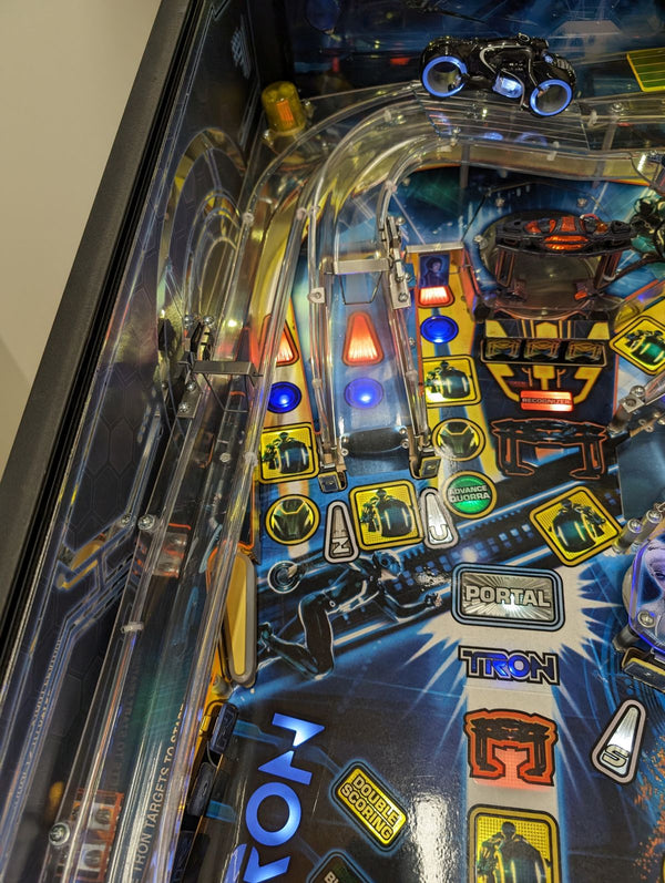 The TRON: Legacy Pinball features an incredible 3D backglass that brings the film’s characters and story to life. TRON: Legacy Pinball also features exciting sound bites from the film’s main characters, as well music from the film’s original score.