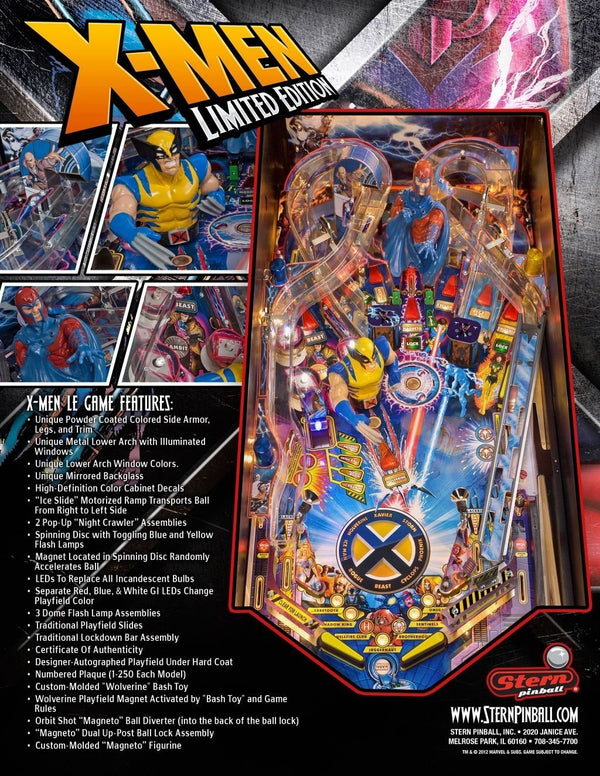 Stern released multiple versions of the game, the standard Pro model version and two Limited Edition versions, themed after Wolverine and Magneto, two of the most famous characters in the series.