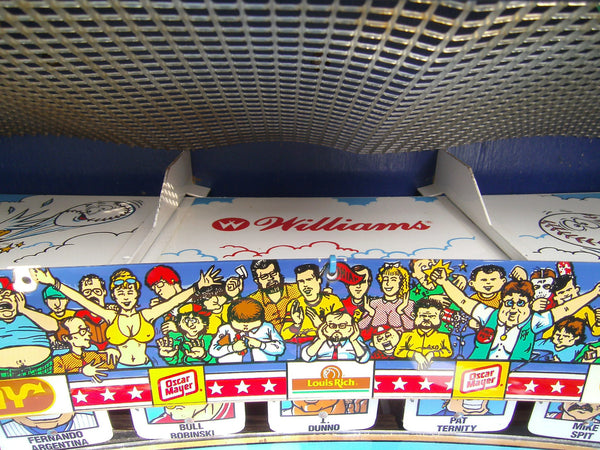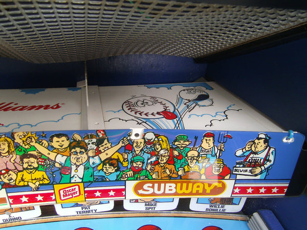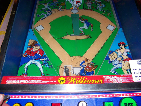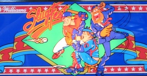 Technically not a pinball machine, but with many parts making it look like one (including a pinball machine-like body and a dot matrix display), Slugfest was built by Williams in 1991. The game most closely resembles a pitch and bat machine and features a single bat ('flipper') and a single ramp. The game features a baseball card dispenser and seems targeted mostly towards kids.
