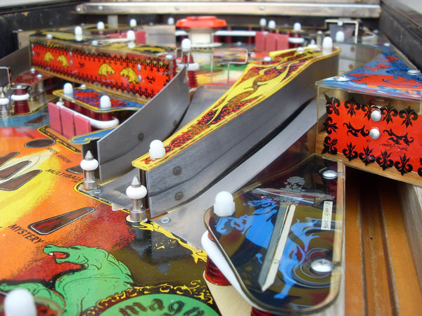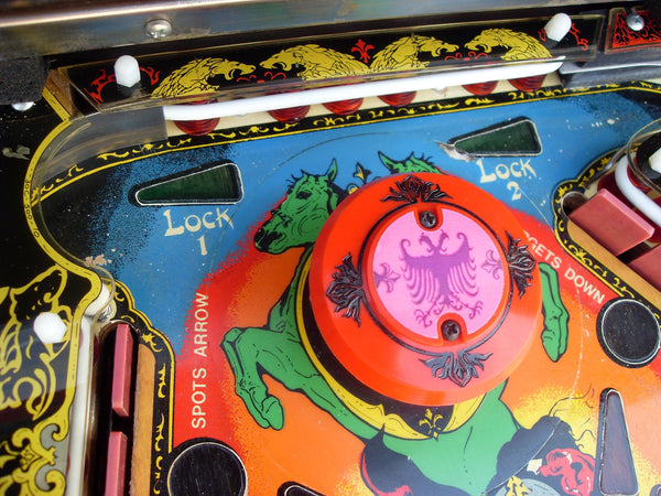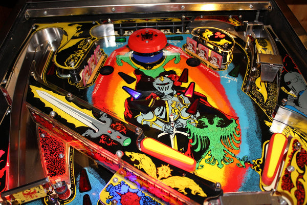 The Black Knight is a milestone in the evolution of pinball. It introduced many of new designs to pinball. It was the first game with the patented "Magna-Save" feature. It was the first with a two-level playing field, and faceted inserts in the playfield.