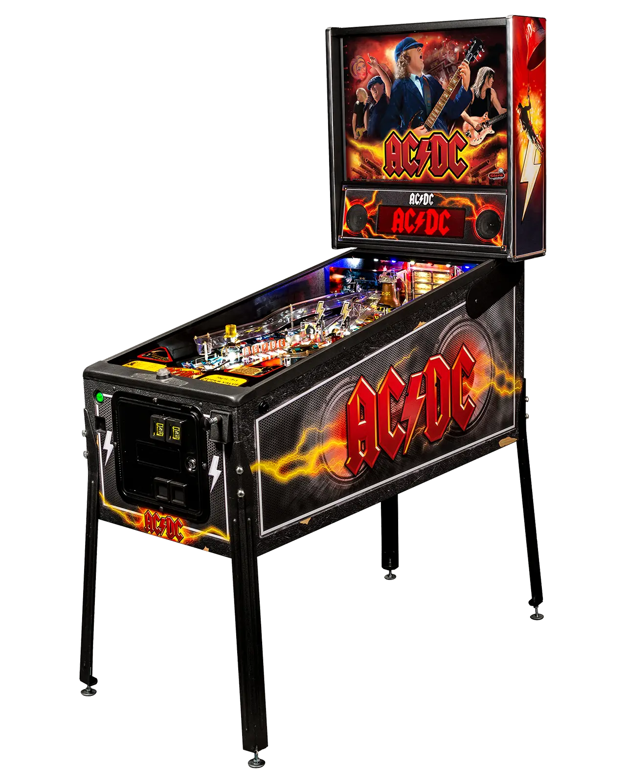 The new AC/DC LED Pro features technological upgrades implemented by Stern in its current Pro models. In addition to the LEDs and the swinging bell, the new AC/DC LED Pro is manufactured with Stern’s updated modern metal and wood back box with a decaled cabinet and speaker housing. All the other great game features, art and music are unchanged from Stern’s earlier AD/DC Pro.
