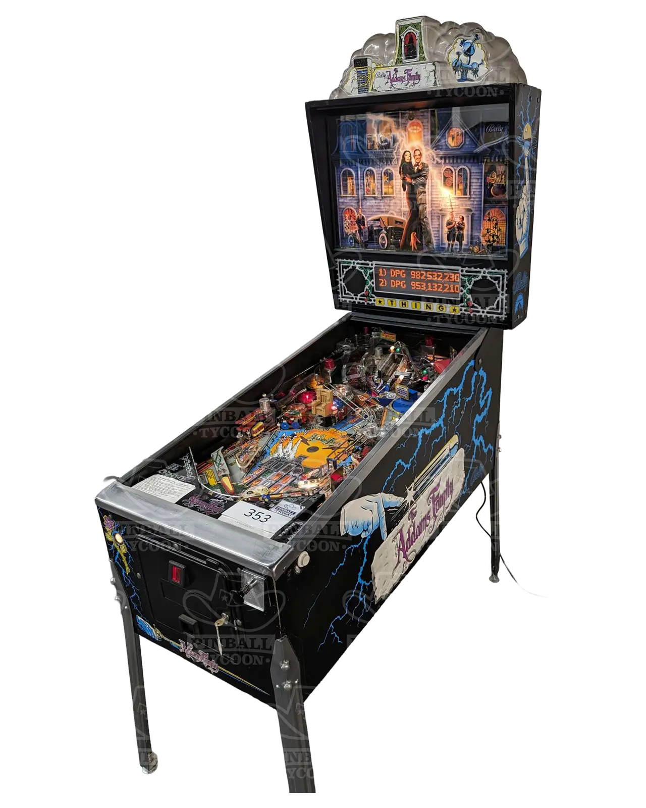 - 'Thing Hand' Includes an animatronic hand with a built in magnet that will grab and lock pinballs for multiball.