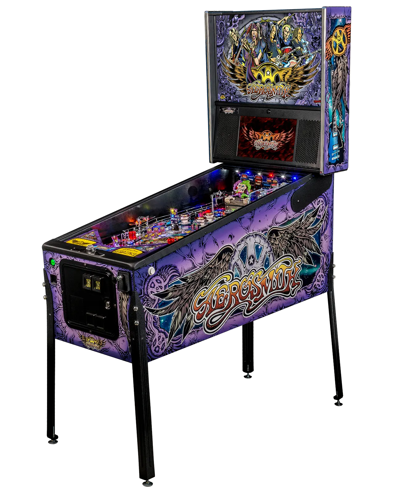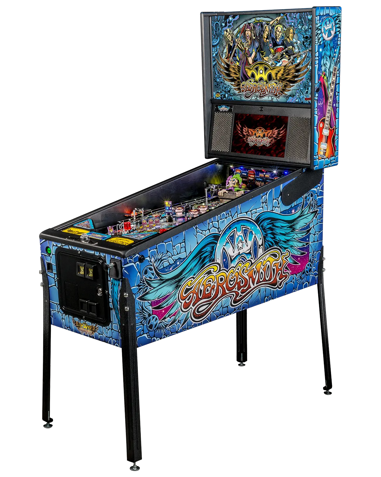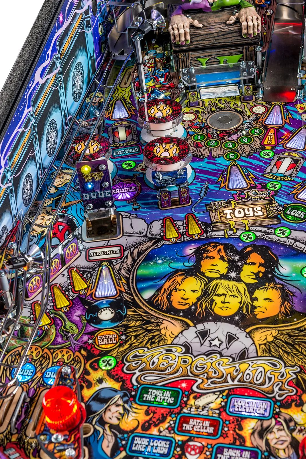 - Super vertical kicker delivers ball to the upper playfield to extend the Aerosmith action!