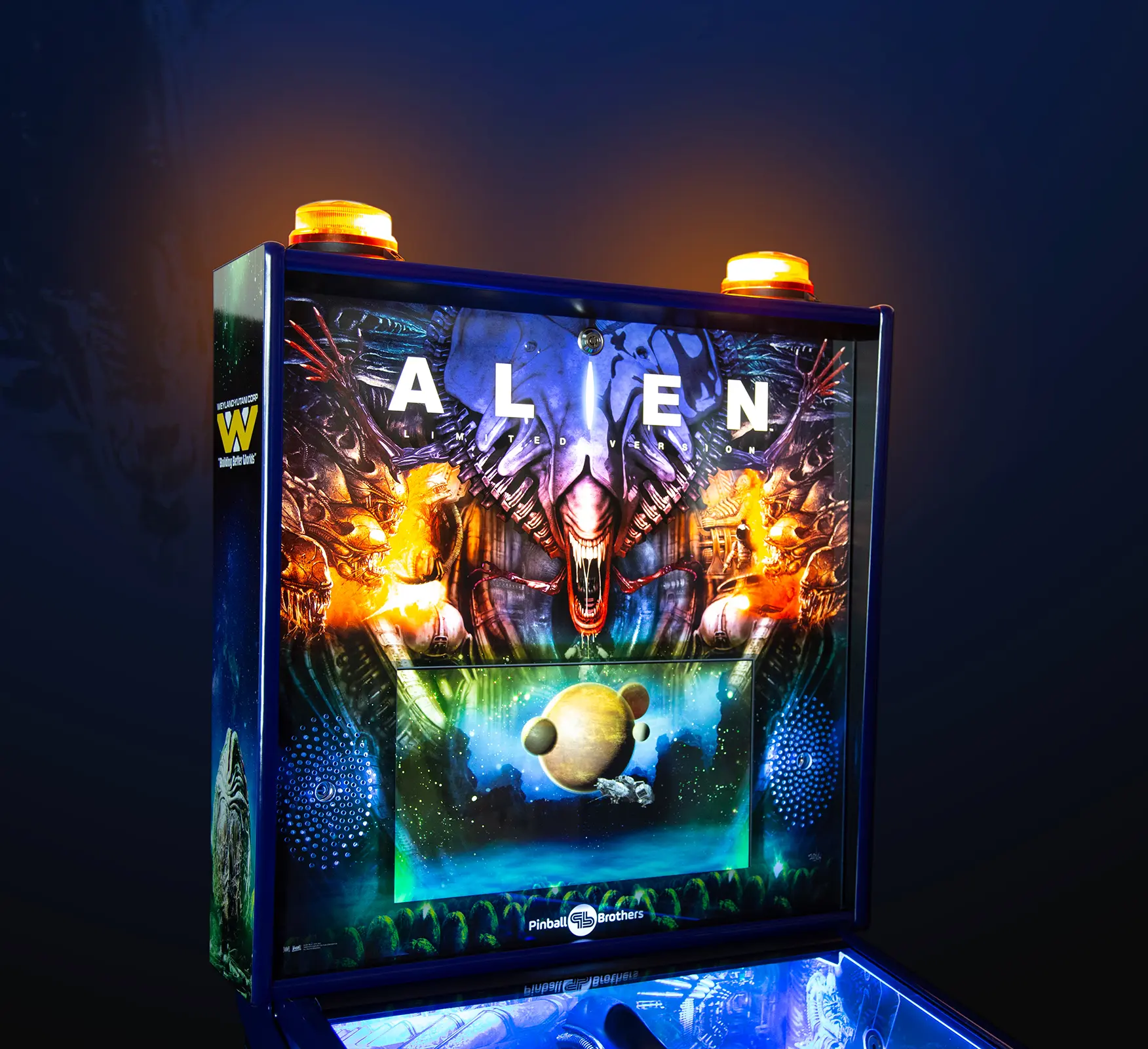 - Sculpted jumping slingshot facehuggers and 3 color-changing Xenomorph egg pop bumpers.