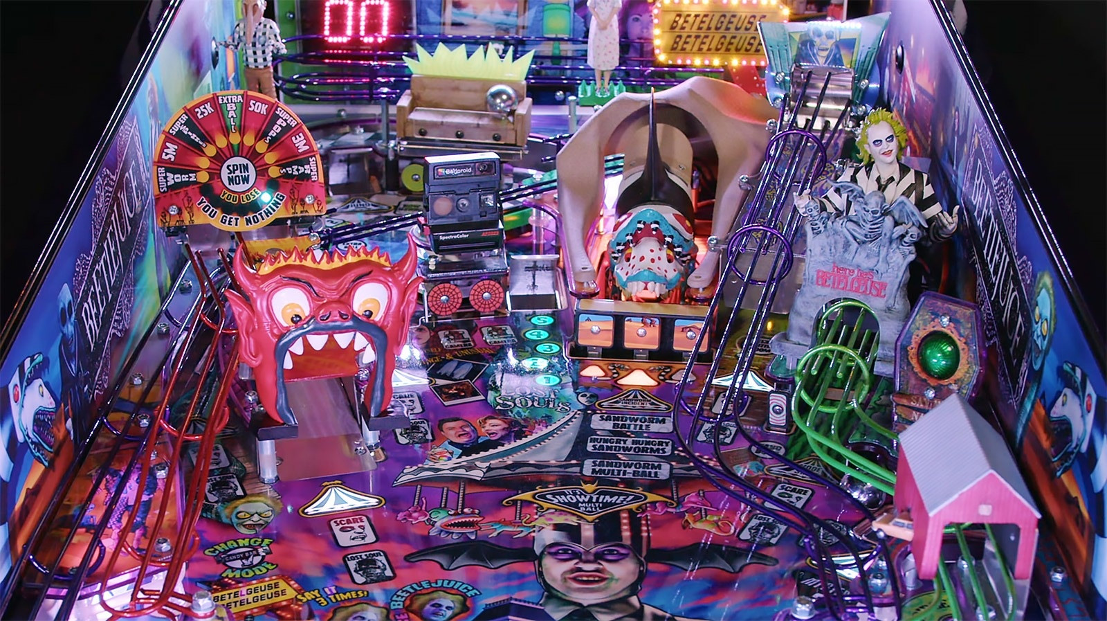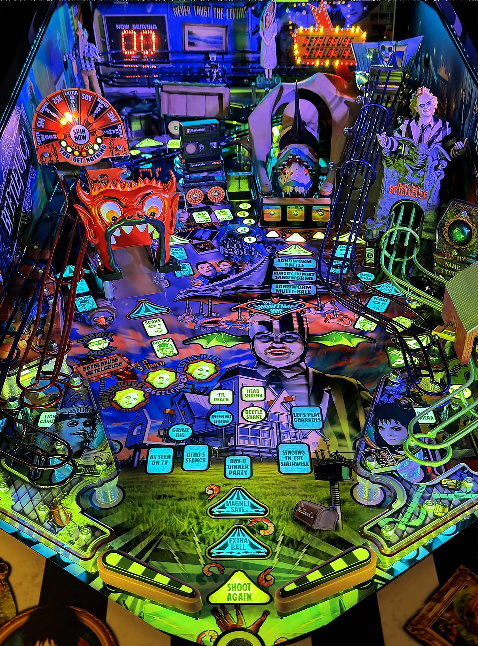 Beetlejuice Collector's Edition $9,999 plus tax and shipping when applicable (Shipping will be calculated when game is ready to ship). Beetlejuice Pinball is a standard body pinball machine set in the world of the iconic 1988 Tim Burton film. Players will experience everything this film has to offer, and more. From getting dropped into Saturn to battle a pinball-eating Sandworm, to working with your Case Worker Juno, or digging up Beetlejuice himself, players will be delighted to our most memorable pinball moments yet. Aiding these moments and sequences is unlimited access to film footage and audio, the Danny Elfman Beetlejuice theme, and Harry Belafonte’s “Day O”. Beetlejuice Pinball is a creation brought to life by Spooky Pinball’s experienced Gaggle of Ghouls. Designer Duo Spooky Luke and Corwin “Bug” Emery are back, with their skills of theme integration, layout flow, mechanisms, and so much more finely tuned in for their 5th game. Artist Christopher Franchi delivers his ninth complete art package with a bold, twisted, and beautiful tribute to Tim Burton’s world. Joining the fun is Brady Hearn, conjuring a hauntingly fun soundscape that ties it all together. Programmers Spooky DJ and Casey Butler have brewed the code into something truly special, fast, funny, and full of surprises! Capturing the chaos and charm of Beetlejuice like never before.Beetlejuice Pinball is more than a game, it’s a door to the afterlife, a carnival of chaos, and the ultimate celebration of the strange and unusual.