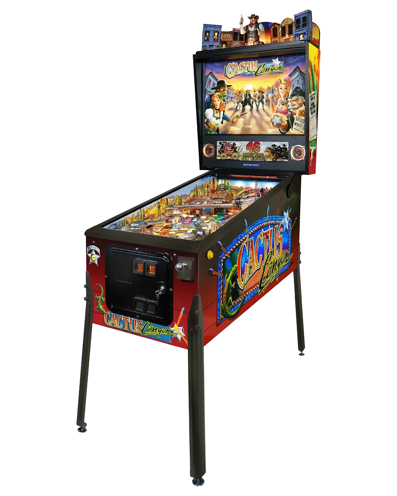 - Cactus Canyon features many new sculptures including: Gold mine mountain, cactus toys, and Black Bart head sculpt with articulated hat that will fly off when he's hit!