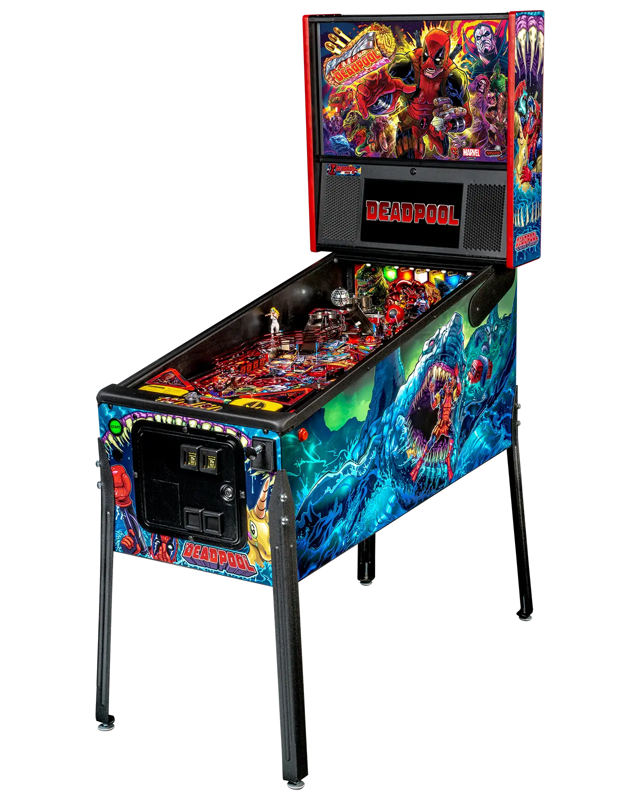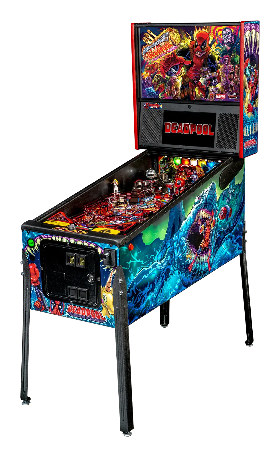 - Exclusive themed deadpool cabinet art and translite.