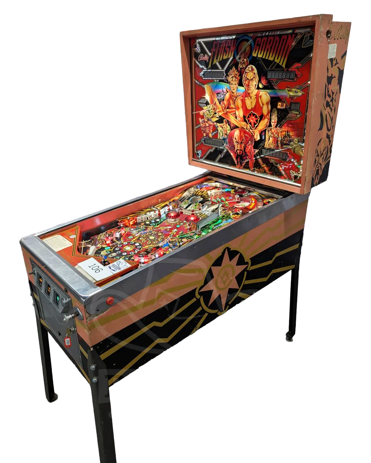 Save the universe with the iconic Flash Gordon pinball machine! Bally's 1981 classic features a split-level playfield & "Squawk & Talk" sound. Own a piece of arcade history.