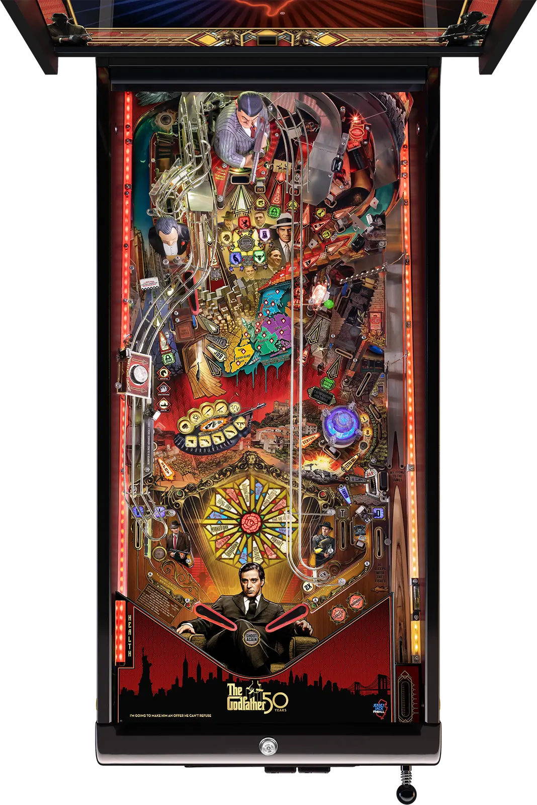 - With intricate gold-accented cabinet to the custom sculpted figures, this machine embodies the prestige and power of the Corleone empire.