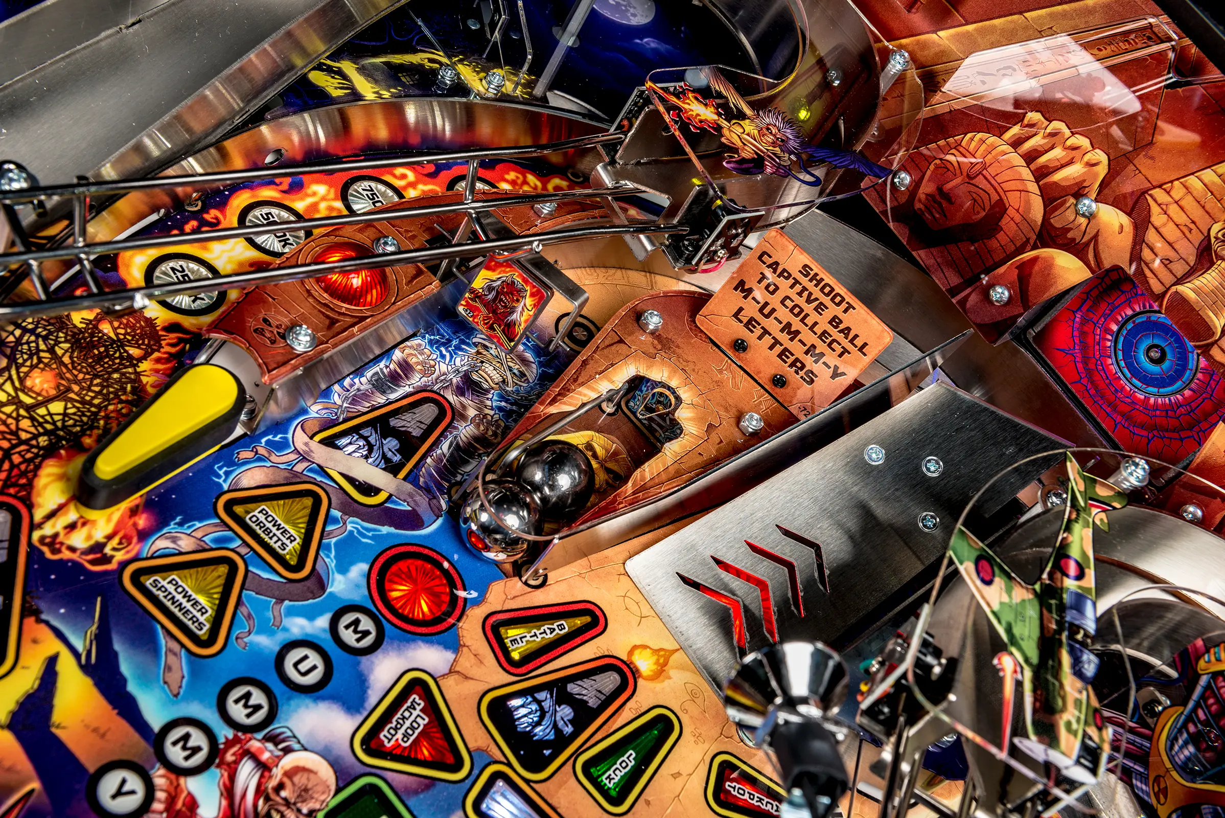 - Includes 12 Iron Maiden songs as players go to battle with the help of four flippers, two spinners, a set of 3-bank drop targets and more!