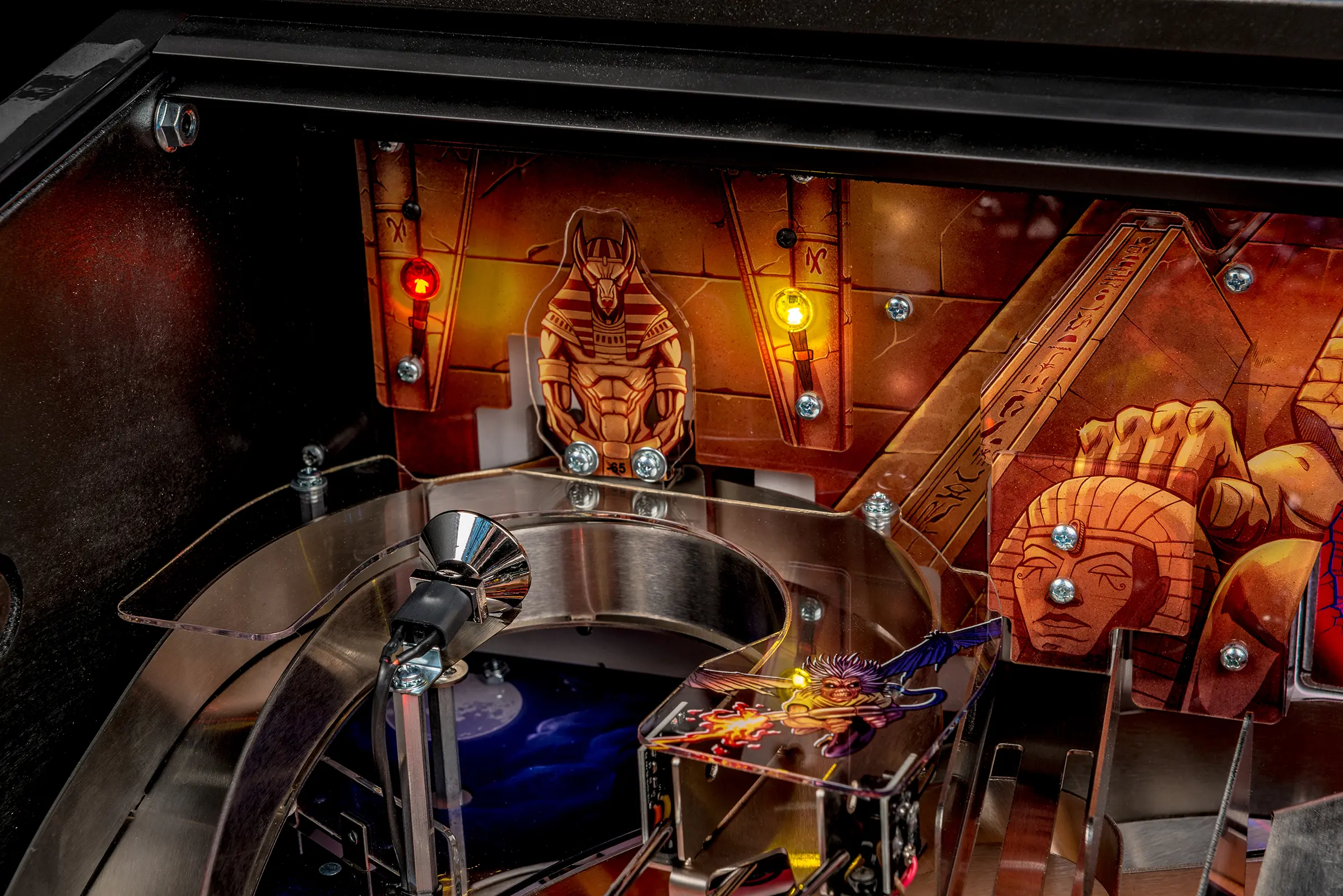 - Use the three segment Pharaoh bullseye target and Newton ball Sarcophagus and a laser-cut center 'Jump' ramp.• Featuring hand drawn side cabinet art by Zombie Yeti!