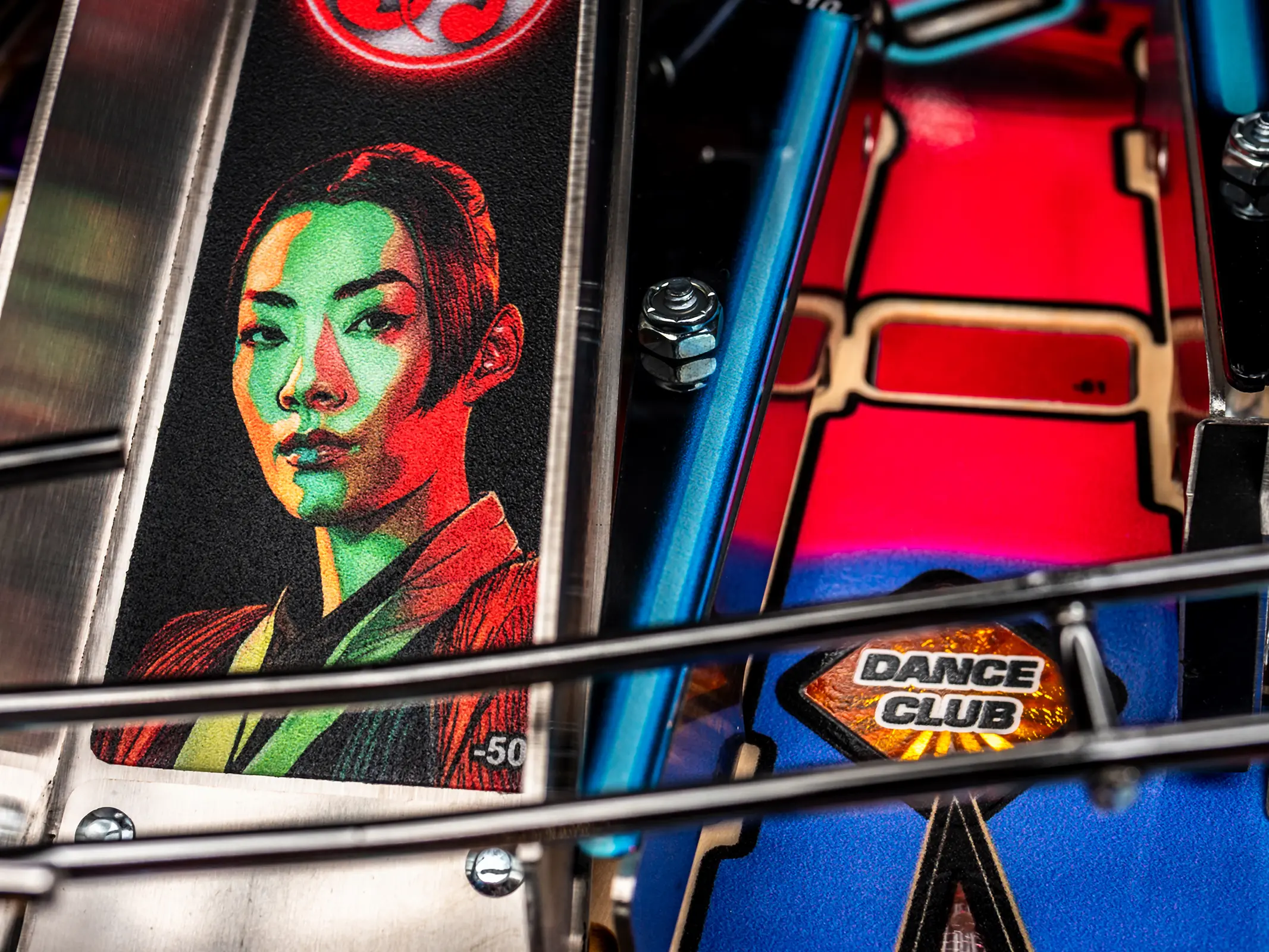 Limited to 1,000 games globally, the highly collectible Limited Edition model includes the Expression Lighting System™ and Speaker Expression Lighting. These integrated lighting systems are synchronized to custom light shows specifically designed for every song and dynamically responsive to game events. The LE version also includes a full-color “Stained Glass” mirrored backglass, full-color reflective brushed silver foil high-definition cabinet decals with hand-drawn artwork by Randy Martinez, exclusive custom powder-coated pinball armor, a custom designer-autographed bottom arch, upgraded audio system, anti-reflection pinball playfield glass, shaker motor, a sequentially numbered plaque, and a signed Certificate of Authenticity.
