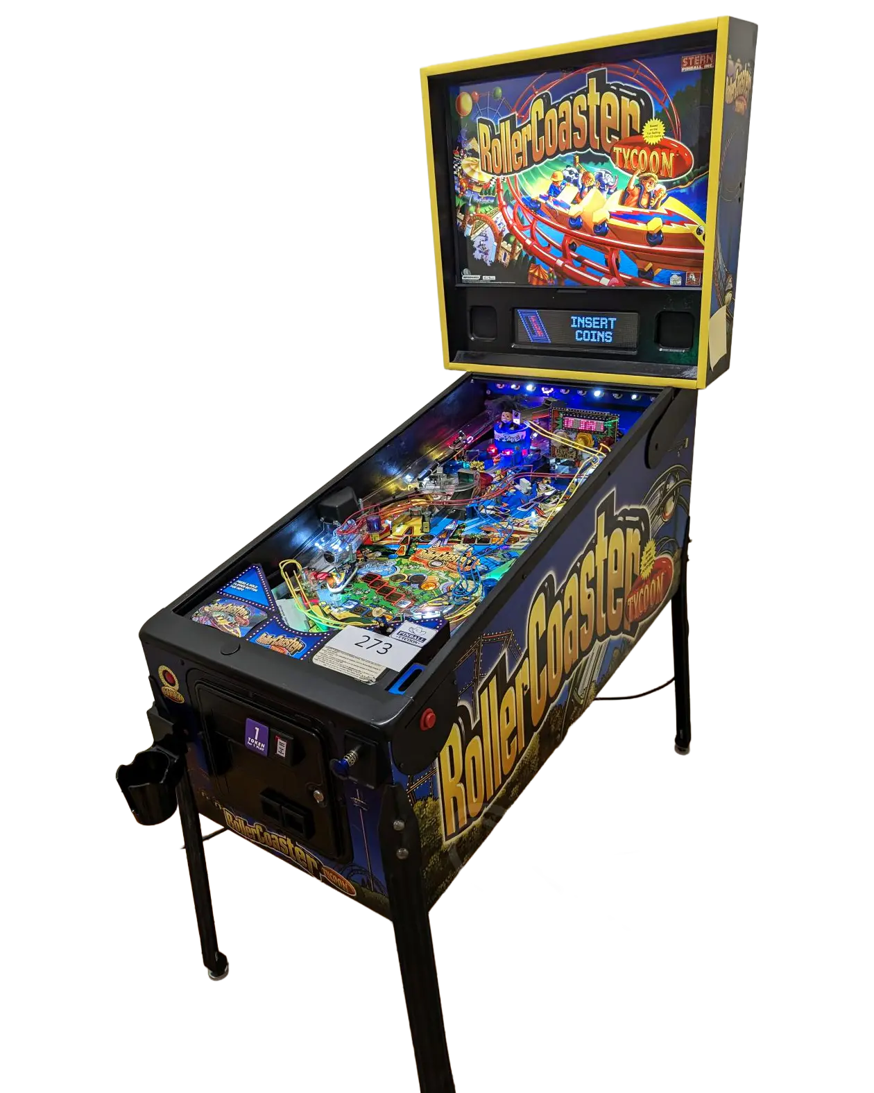 Experience the thrill of RollerCoaster Tycoon pinball by Stern. Designed by Pat Lawlor, enjoy exciting coaster ramps and unique toys!