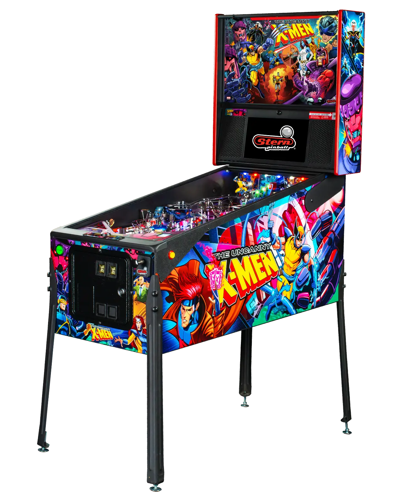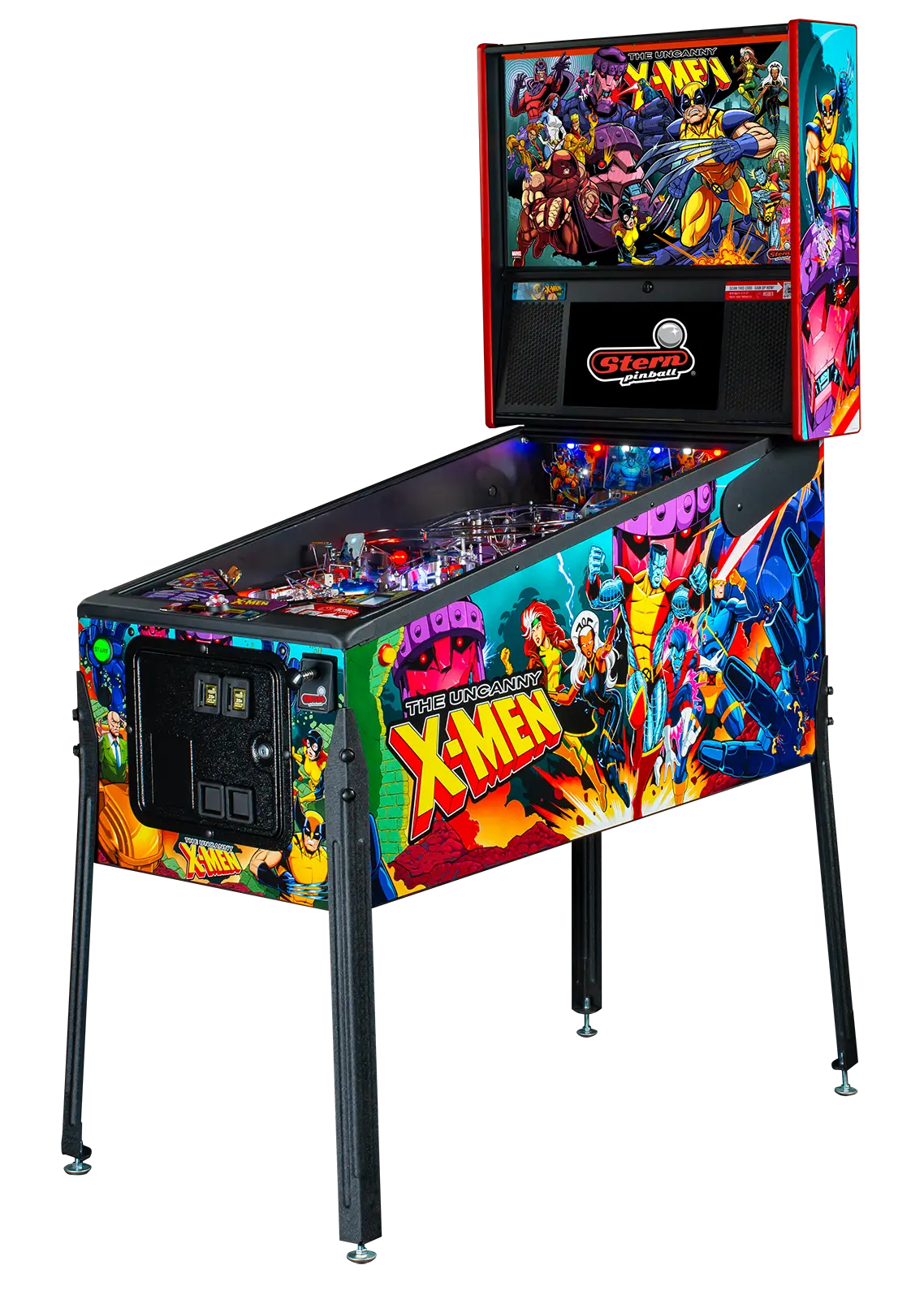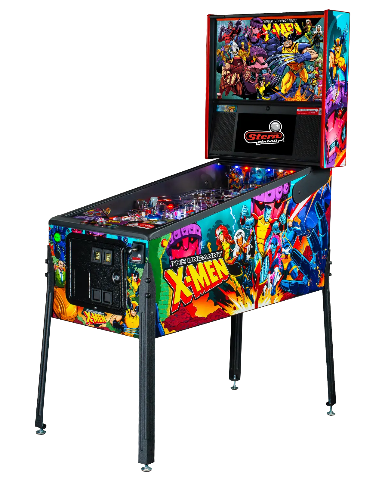 - Pro model features The Uncanny X-men against their antagonists in a full color translite and iconic side cabinet hand-drawn artwork by Zombie Yeti.