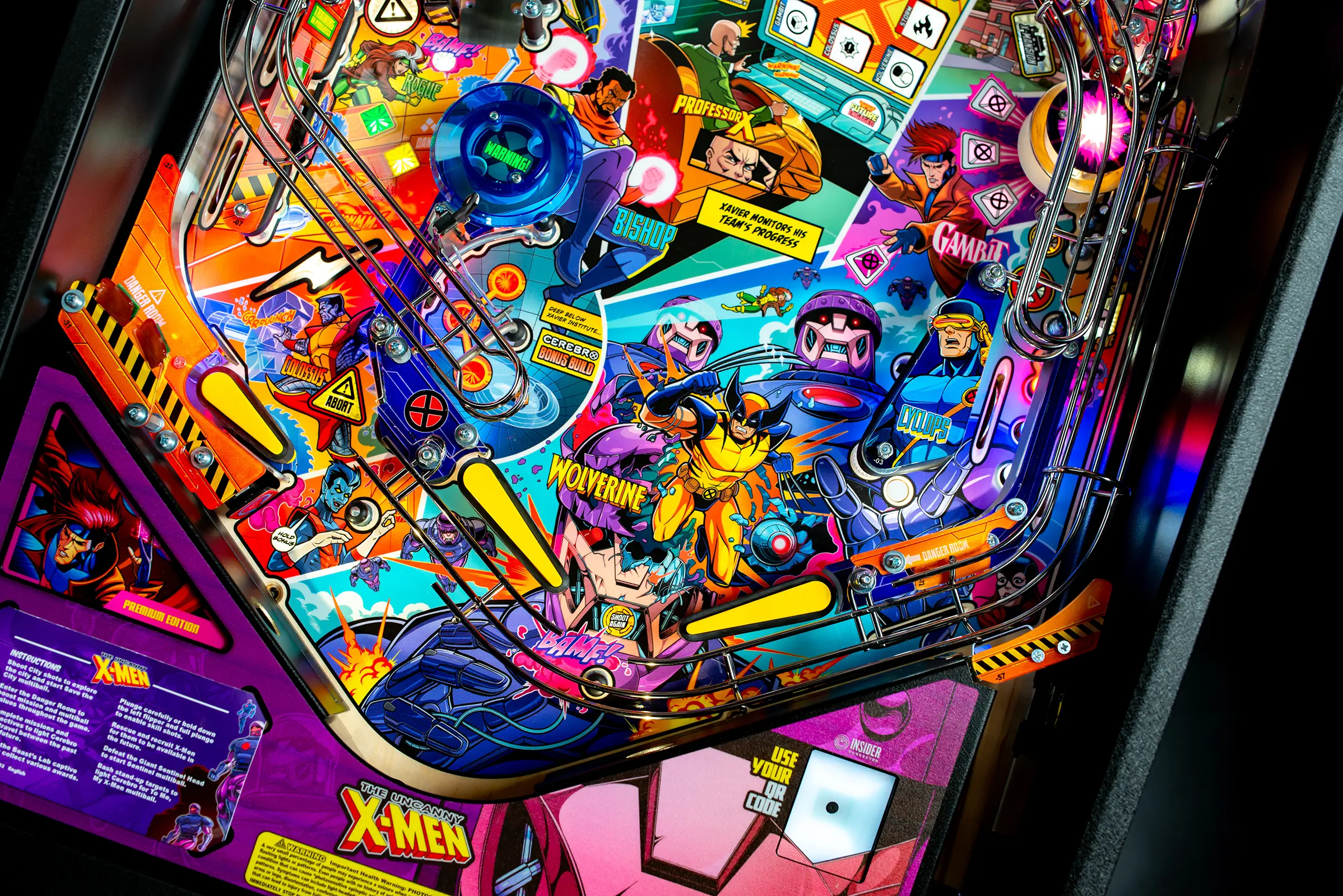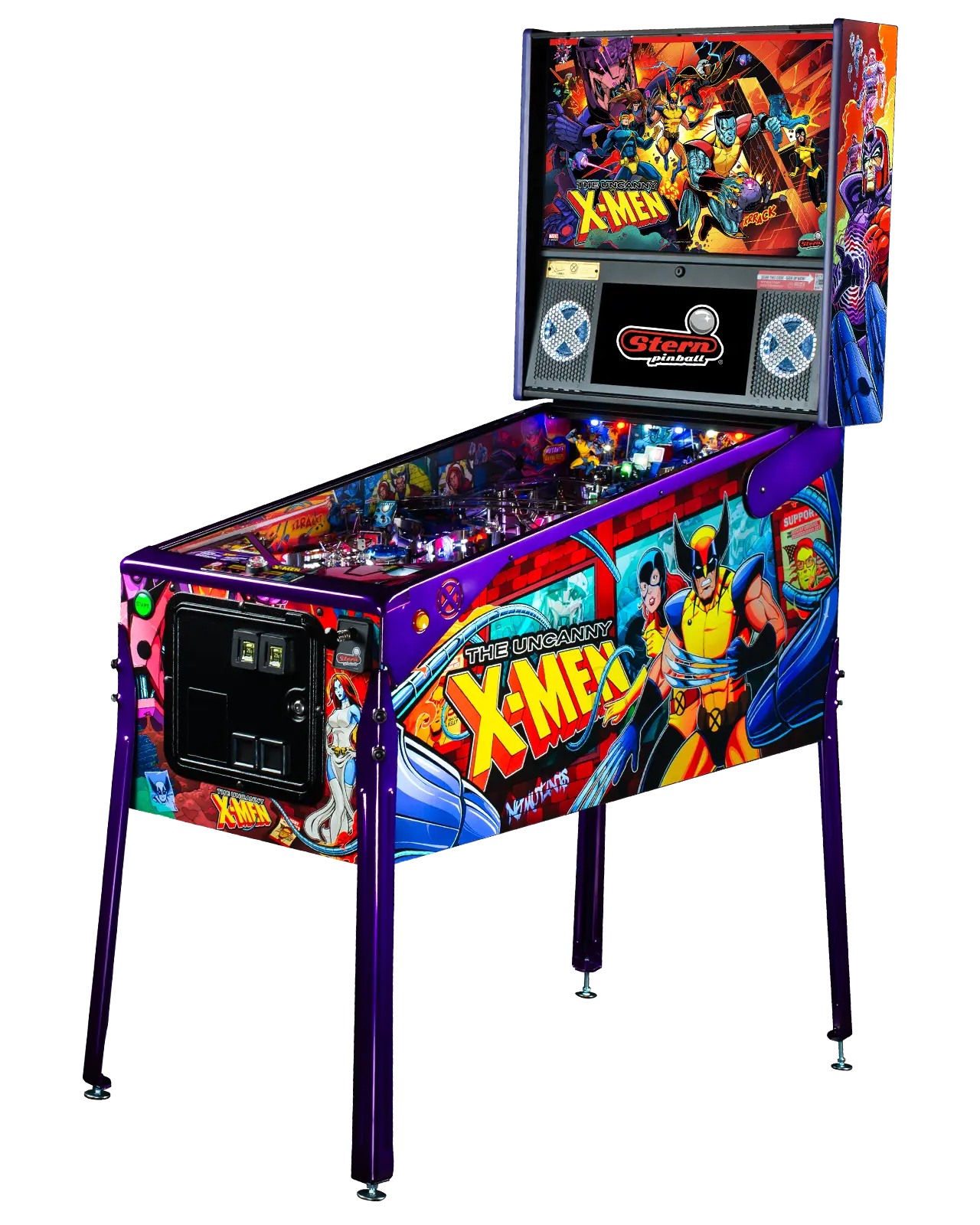 - Includes Interactive Speaker Expression Lighting with X-Men themed effects, Upgraded speaker system with 3-channel amplifier, and Anti-reflection playfield glass.