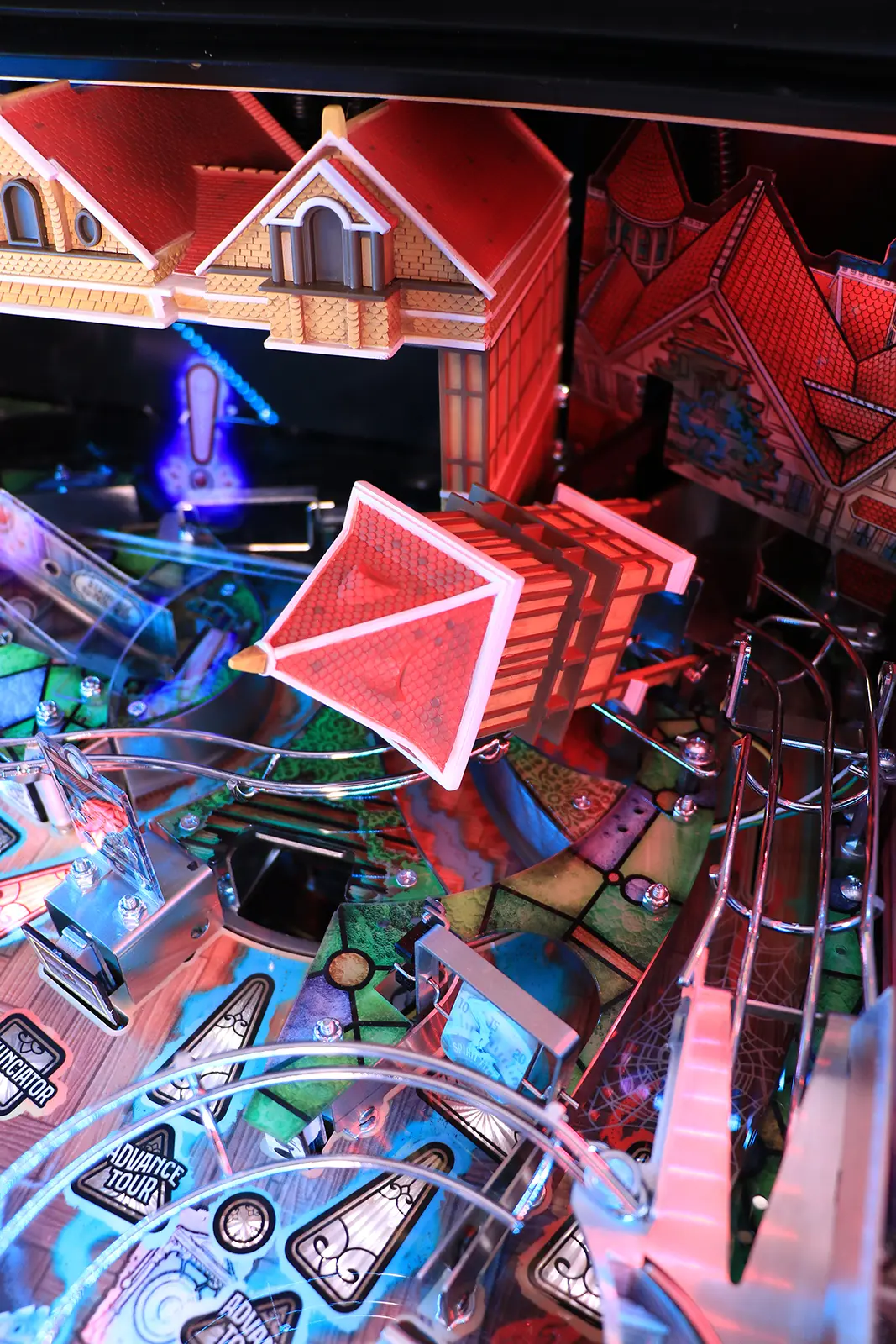- Horrifically Haunted! Shoot the fully-sculpted interactive ghost box and the Staircase to nowhere magnetic ball catch.