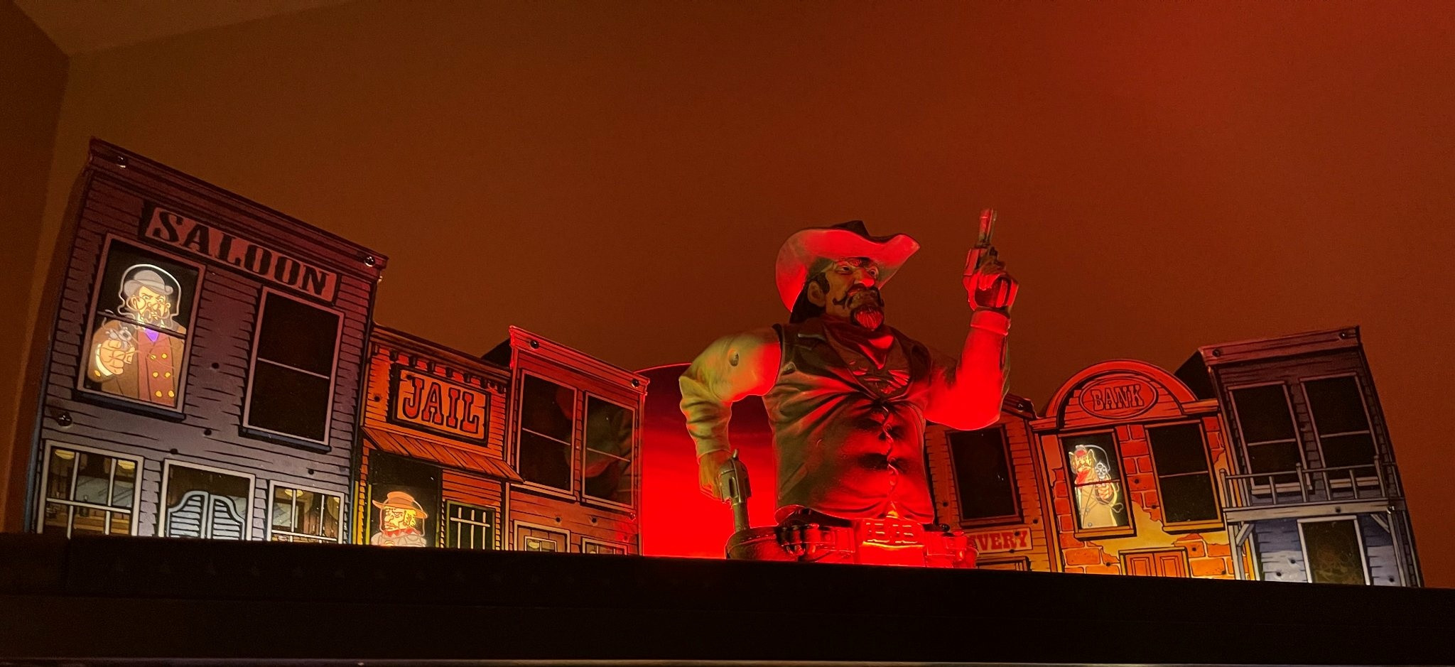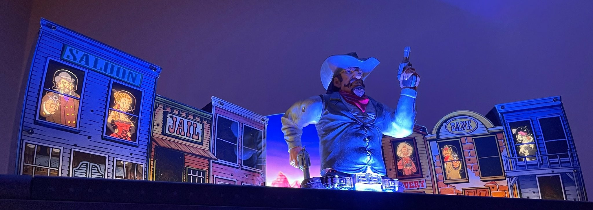 Cactus Canyon features expanded game rules, new display art and new sounds all of which are exclusive to Cactus Canyon Remake. All new full-color display artwork, re-imagined within the framework of the original Williams display artwork at four times the resolution. Thousands of frames have been painstakingly animated to create a display that features full color and four times the number of dots as the original Williams game.