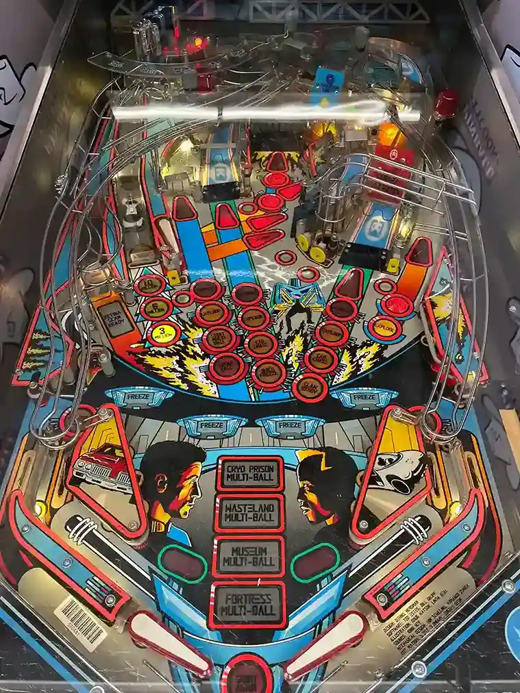 Play the iconic "Demolition Man" pinball machine from Williams (1994). Enjoy fast-paced combo shots, unique gun flippers, and the Cryo-Claw.