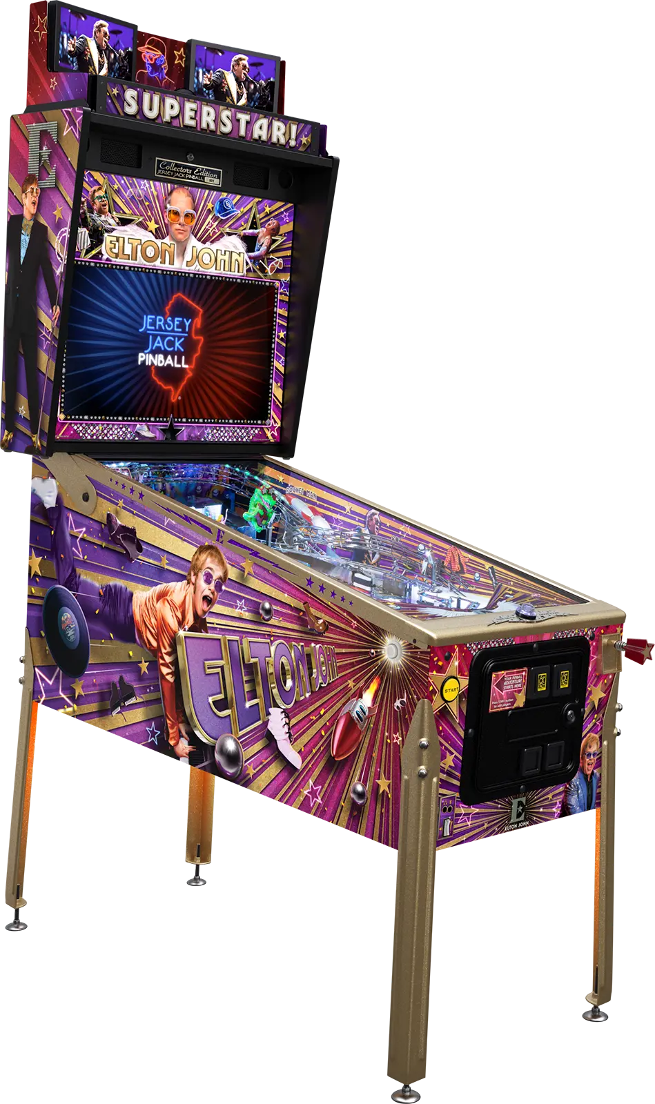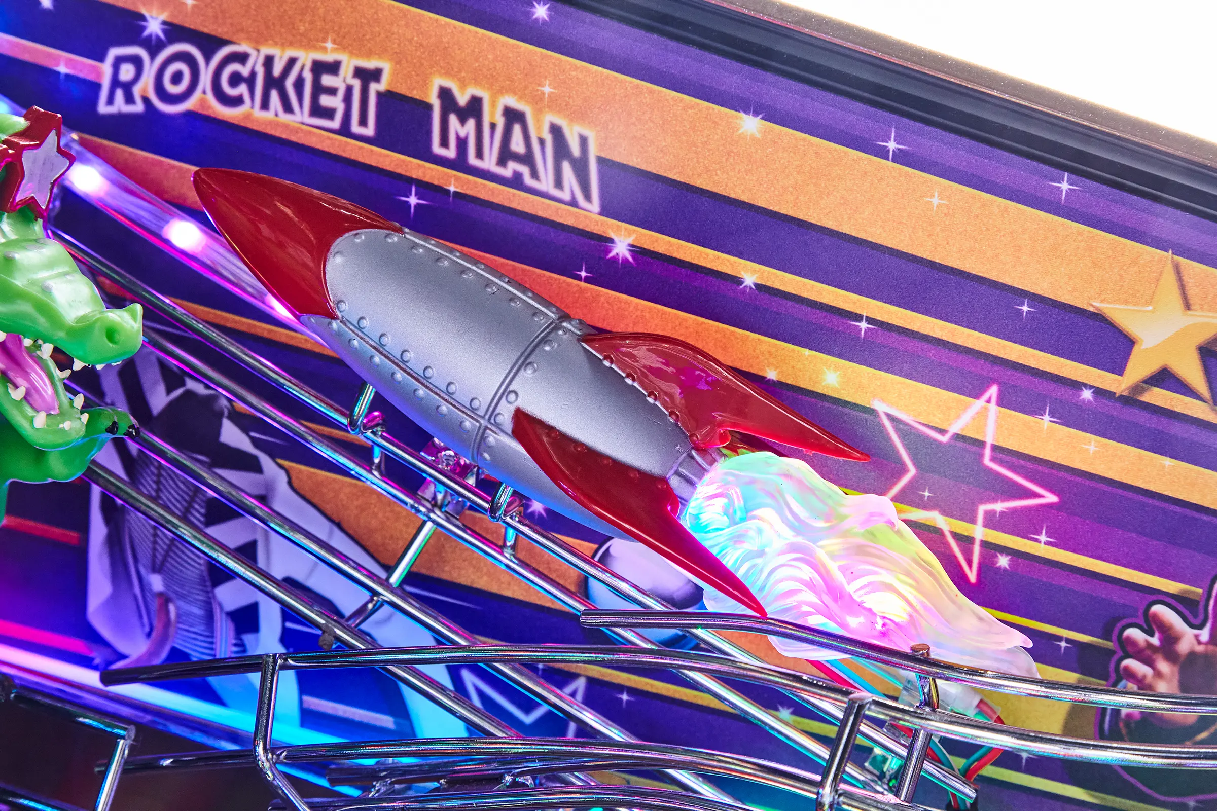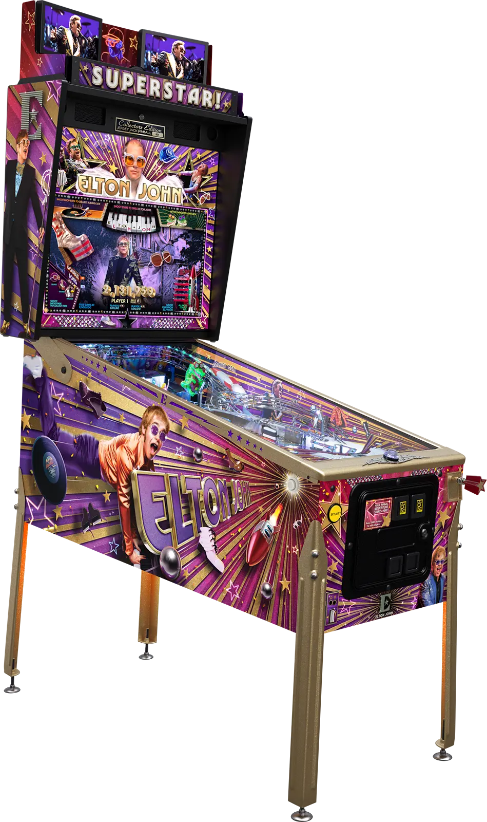 The Collector’s Edition is the ultimate tribute to Elton John’s career, offering unparalleled luxury and exclusivity. With only 1000 units made, this version is a true collector’s dream. The cabinet design features Elton’s signature flamboyant style, including custom artwork and premium lighting effects. Exclusive to this edition, the interactive topper with exclusive CE art package by Jean Paul de Win, John Youssi, and Christopher Franchi adds a dazzling display to your gameplay, perfectly complementing the synchronized concert-style interactive laser lightshow.Inside, the Collector’s Edition includes a piano-playing Elton John sculpture, Rocket sculpture with LED flames, 'Tiny Dancer' motorized sculpture, and 'Crocodile Rock' physical lock sculpture inspired by Elton John's legendary career as well as an autographed apron card and exclusive features that set it apart from any other pinball machine. This is more than a game—it’s a centerpiece for any collector’s home or arcade.