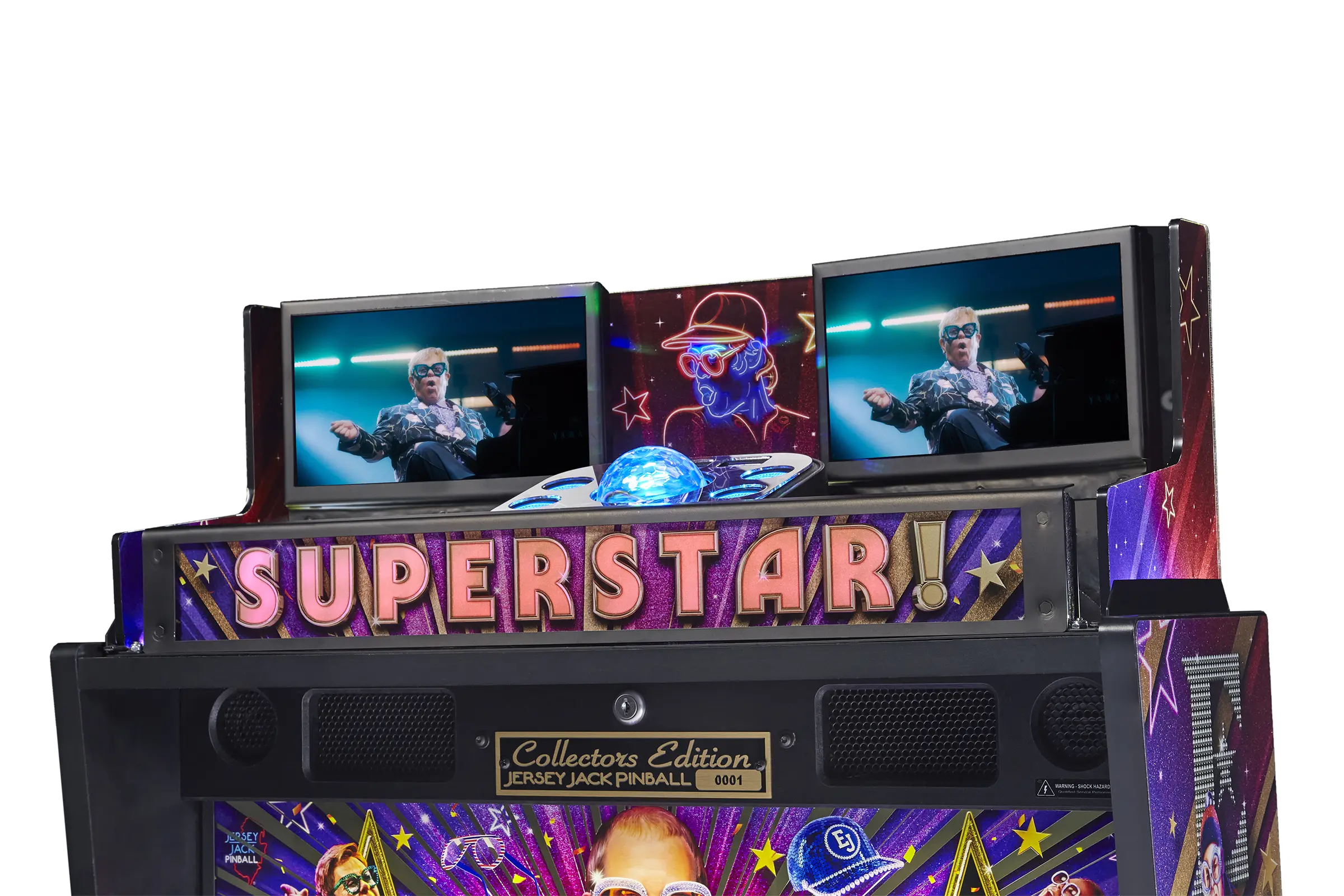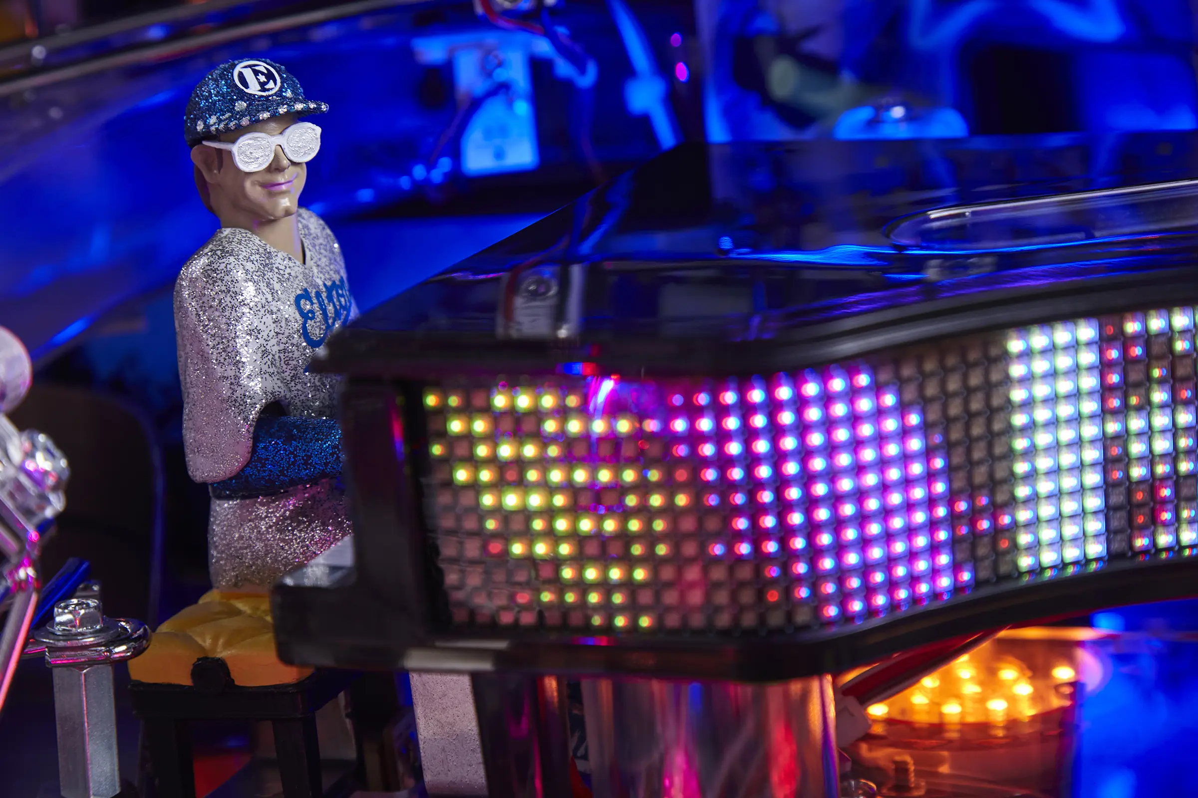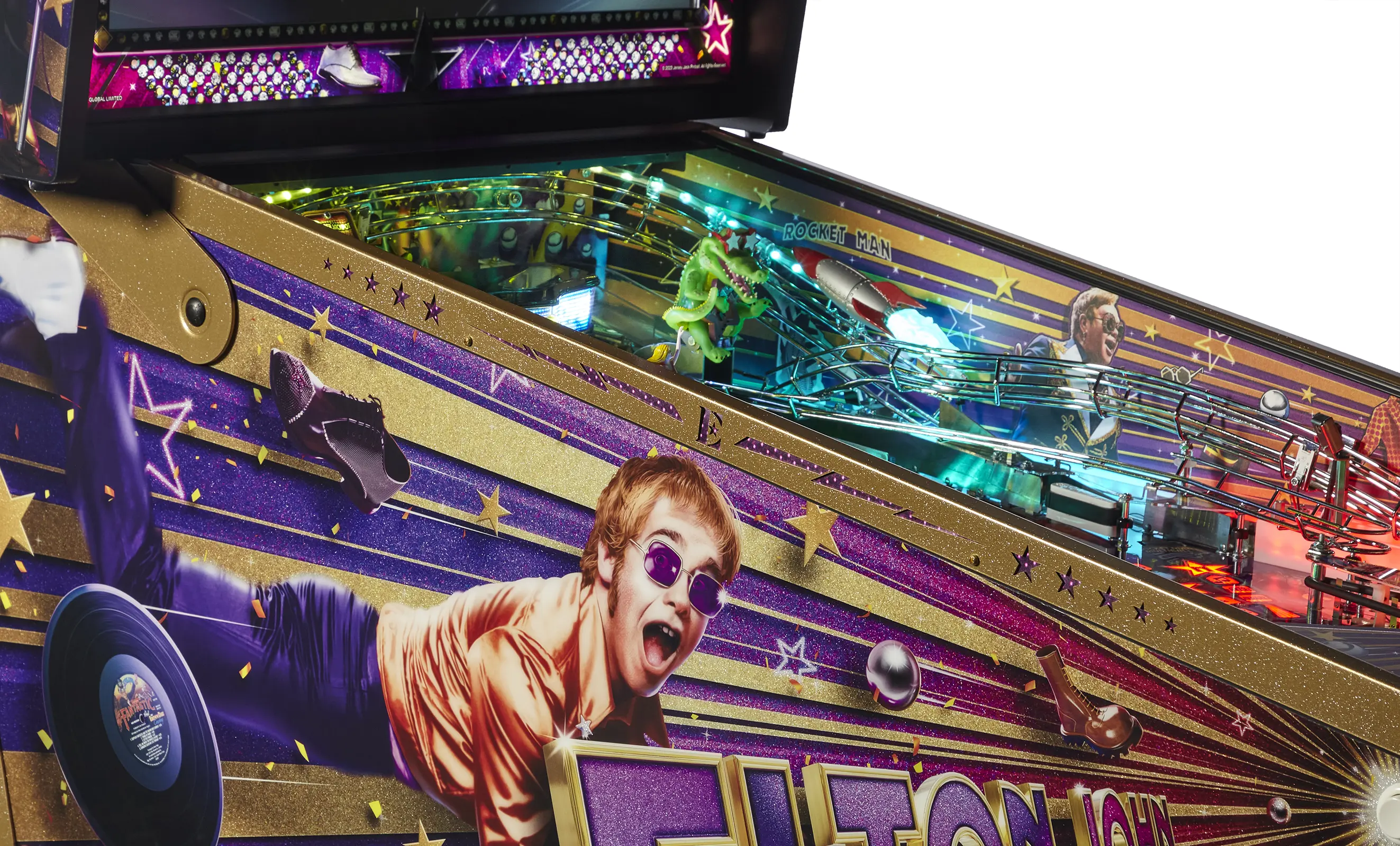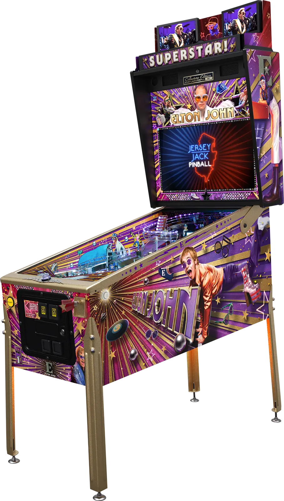 The Collector’s Edition is the ultimate tribute to Elton John’s career, offering unparalleled luxury and exclusivity. With only 1000 units made, this version is a true collector’s dream. The cabinet design features Elton’s signature flamboyant style, including custom artwork and premium lighting effects. Exclusive to this edition, the interactive topper with exclusive CE art package by Jean Paul de Win, John Youssi, and Christopher Franchi adds a dazzling display to your gameplay, perfectly complementing the synchronized concert-style interactive laser lightshow.Inside, the Collector’s Edition includes a piano-playing Elton John sculpture, Rocket sculpture with LED flames, 'Tiny Dancer' motorized sculpture, and 'Crocodile Rock' physical lock sculpture inspired by Elton John's legendary career as well as an autographed apron card and exclusive features that set it apart from any other pinball machine. This is more than a game—it’s a centerpiece for any collector’s home or arcade.