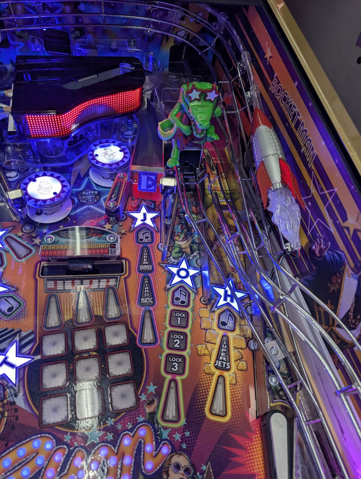 The Collector’s Edition is the ultimate tribute to Elton John’s career, offering unparalleled luxury and exclusivity. With only 1000 units made, this version is a true collector’s dream. The cabinet design features Elton’s signature flamboyant style, including custom artwork and premium lighting effects. Exclusive to this edition, the interactive topper with exclusive CE art package by Jean Paul de Win, John Youssi, and Christopher Franchi adds a dazzling display to your gameplay, perfectly complementing the synchronized concert-style interactive laser lightshow.Inside, the Collector’s Edition includes a piano-playing Elton John sculpture, Rocket sculpture with LED flames, 'Tiny Dancer' motorized sculpture, and 'Crocodile Rock' physical lock sculpture inspired by Elton John's legendary career as well as an autographed apron card and exclusive features that set it apart from any other pinball machine. This is more than a game—it’s a centerpiece for any collector’s home or arcade.
