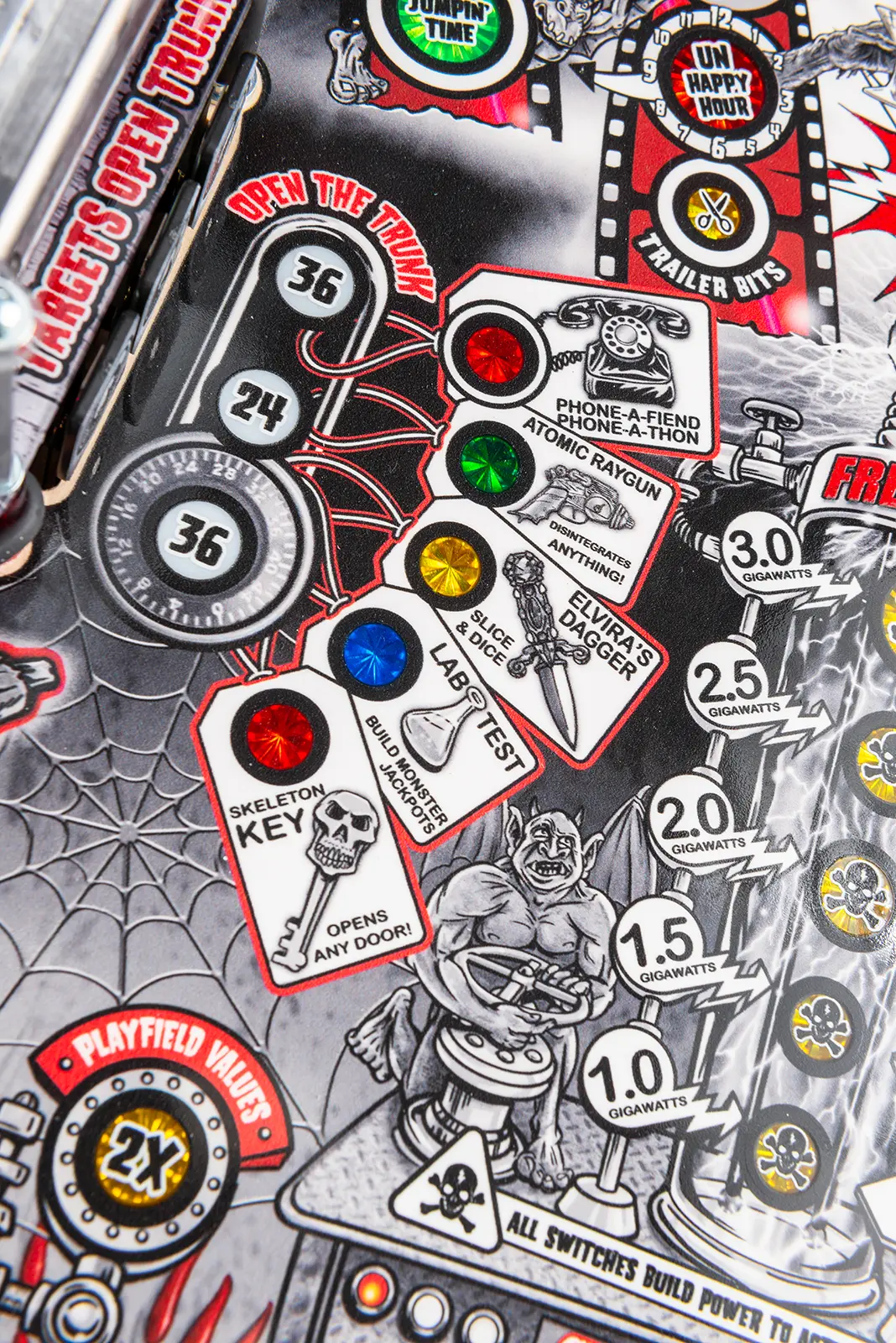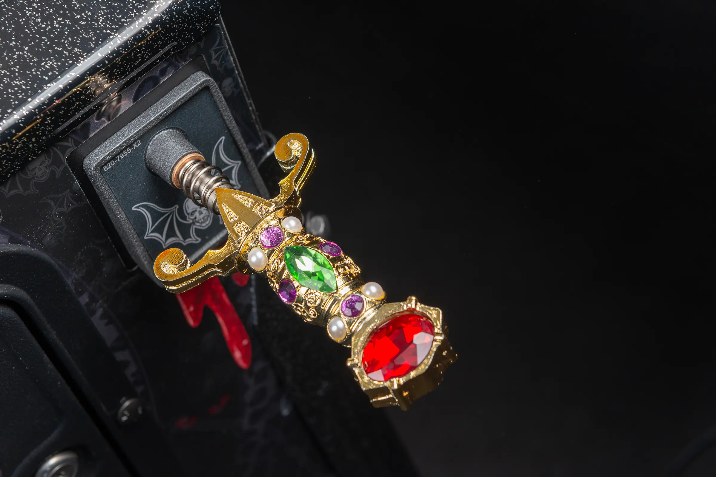 - Includes the bejeweled Elvira’s Dagger Shooter Knob.
