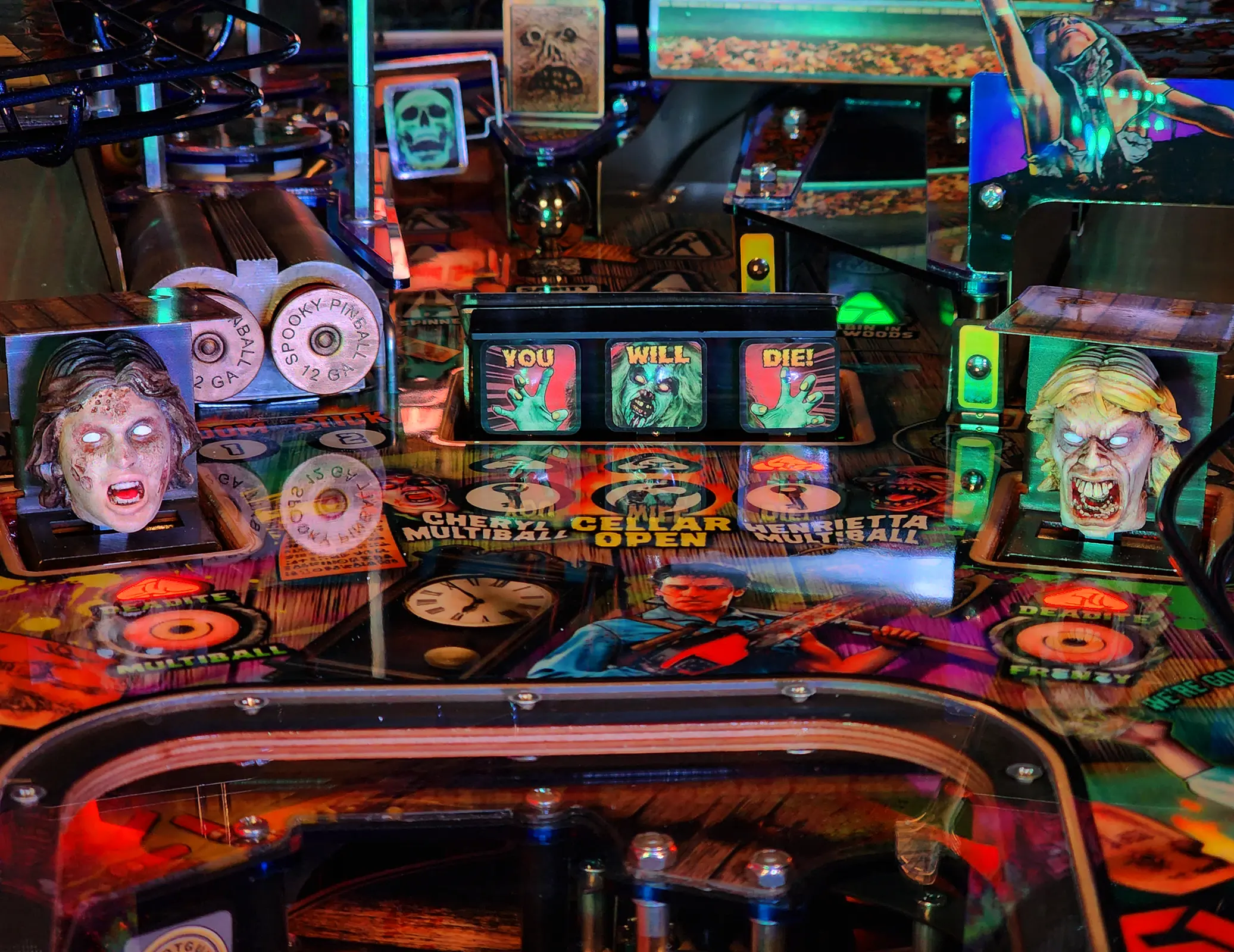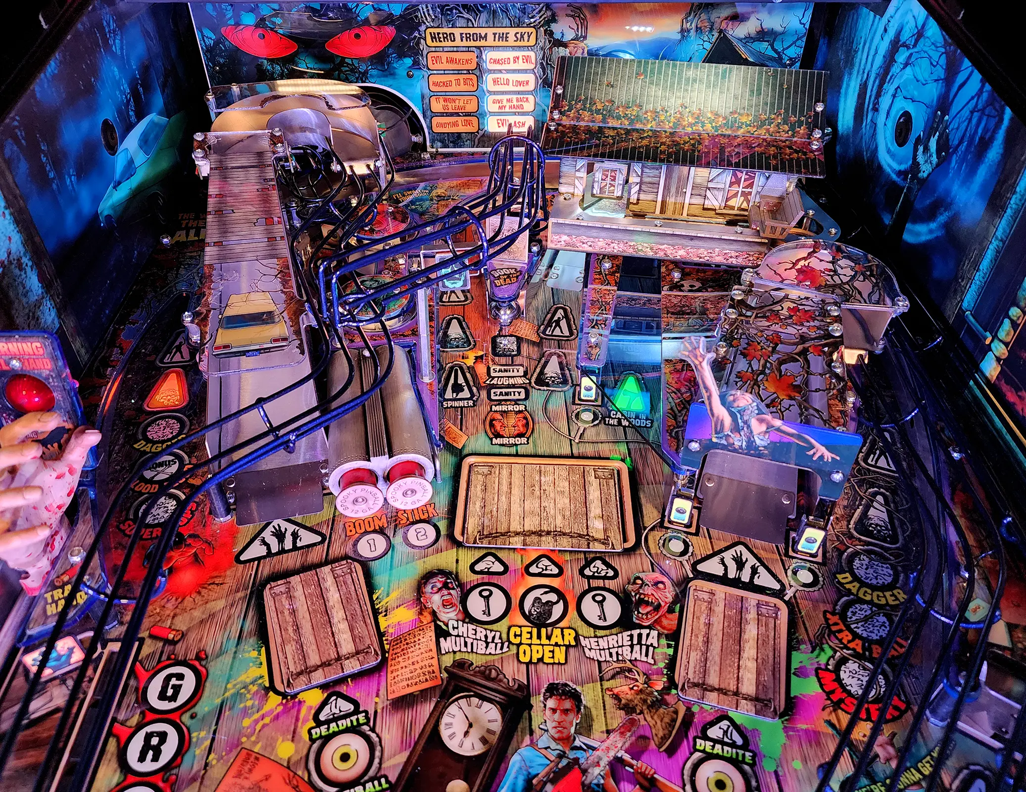 Evil Dead Collector's Edition $9,999 plus tax and shipping when applicable (Shipping will be calculated when game is ready to ship). Evil Dead Pinball is a wide body pinball machine set in the world of the first two films of the iconic franchise, The Evil Dead, and Evil Dead 2: Dead by Dawn. The players will be guided along by Ashley Williams, voiced by Bruce Campbell, as they battle the relentless forces of evil. Ash's now evil girlfriend Linda (voiced by Lara Sluyter) and Professor Knowby (Voiced by Scott Innes) will provide an additional level of Deadite trickery and direction to the game. Evil Dead Pinball is our most ambitious game to date, featuring the highest number of mechs in a Spooky Pinball machine yet. The game also features original clips, speech, and sfx from both films. Evil Dead Pinball is the 4th game by the designer duo "Spooky Luke" and Corwin "Bug" Emery. Many other Spooky crew members have returned for this release, including Ben Heck on the code, Matt Montgomery providing the score, Back Alley Creations, on the sculpts. This is also the first in a series of many Spooky Pinball games featuring a full art package by Christopher Franchi. It's time to officially "Join Us" in what we can confidently say is our most beautiful, most loaded, most impressive world under glass yet.
