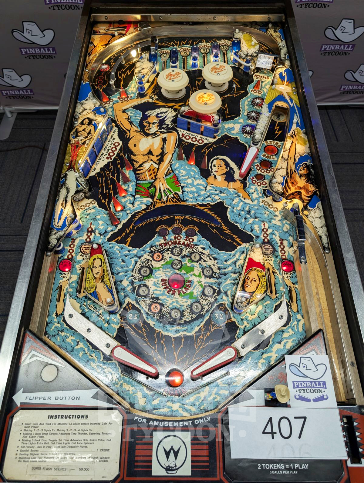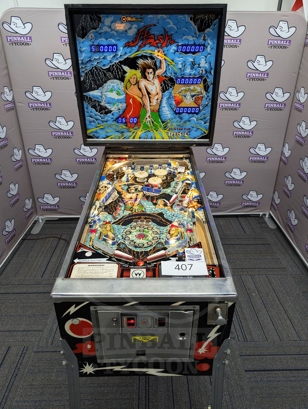 Experience a pinball first! Williams Flash (1979) introduced dynamic background sound & flash lamps. Fast, challenging, classic arcade fun