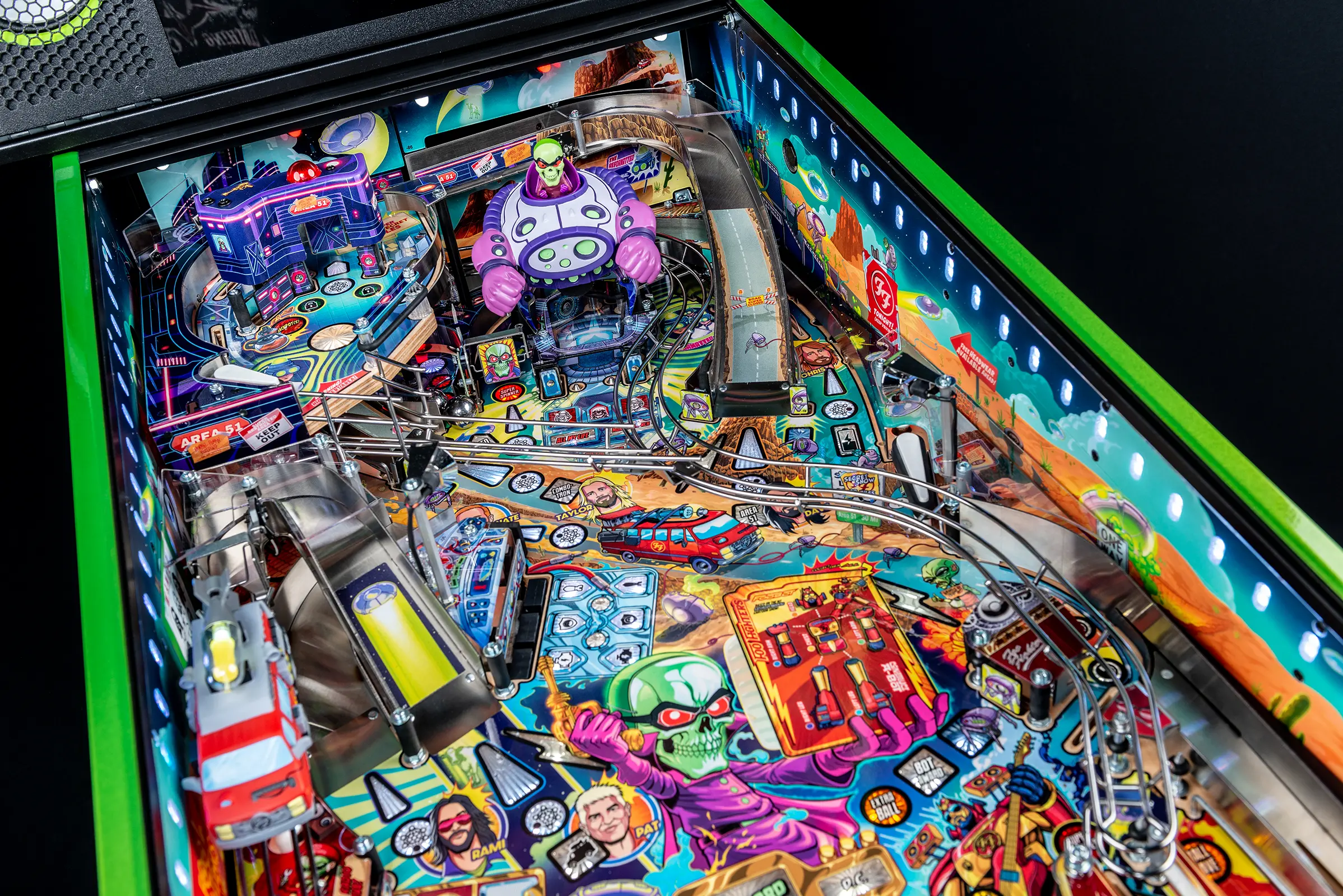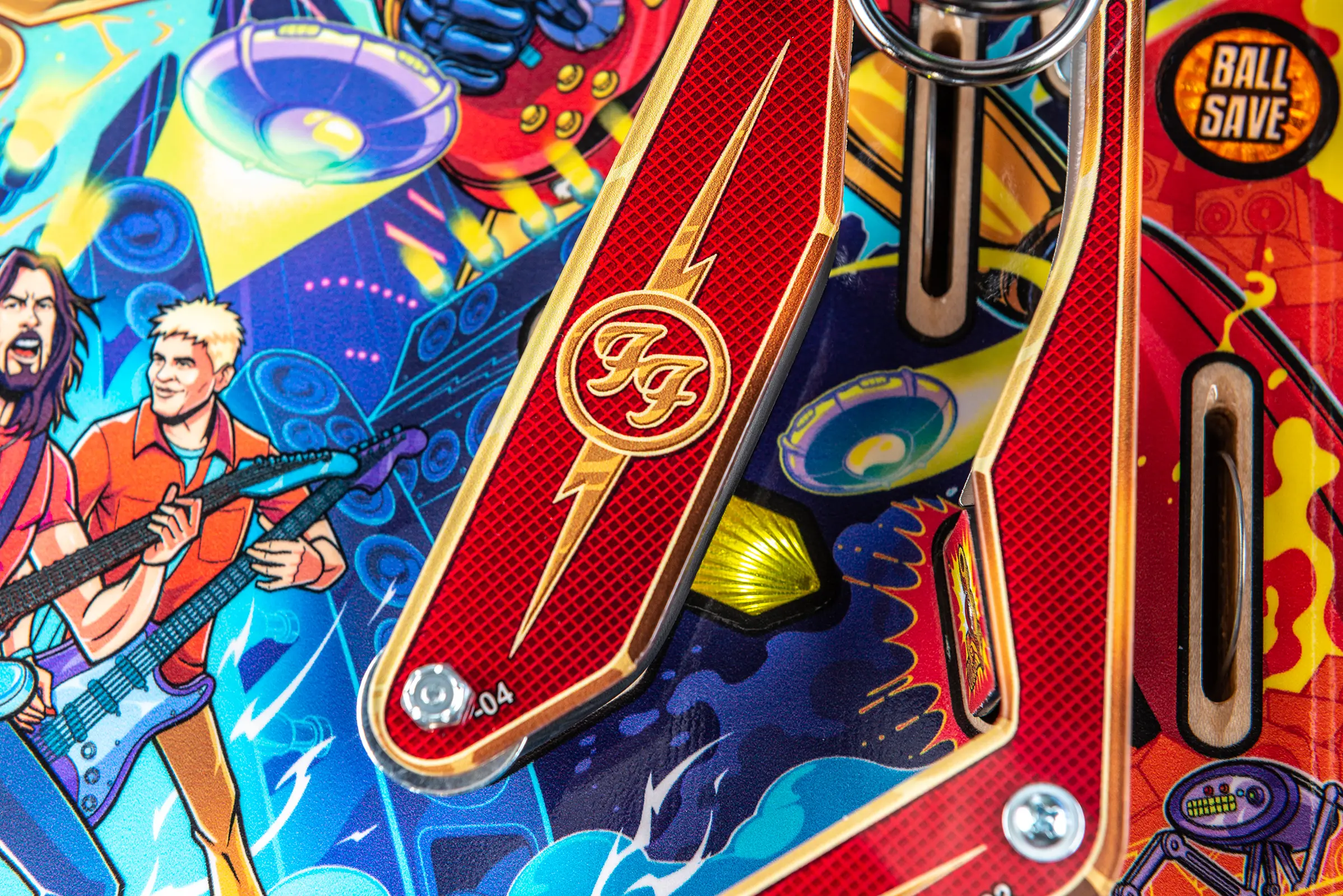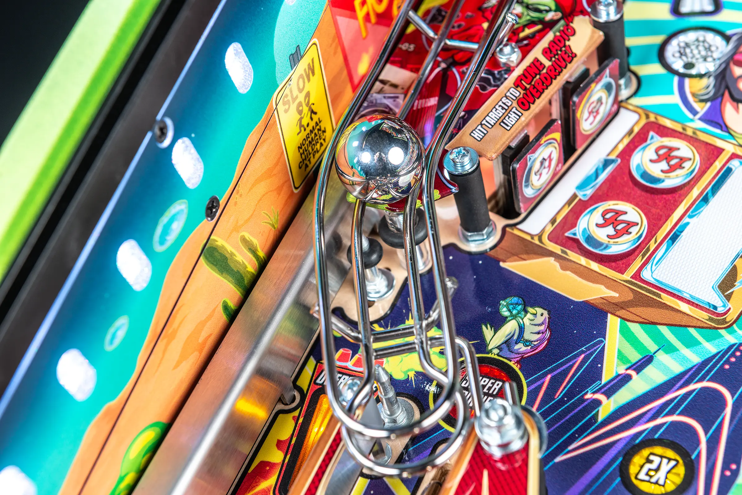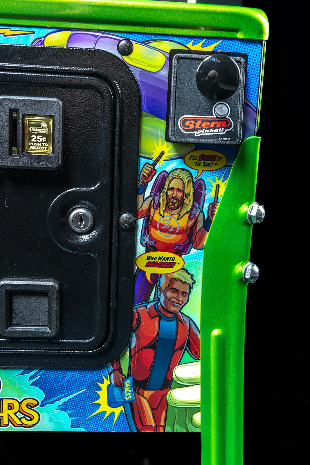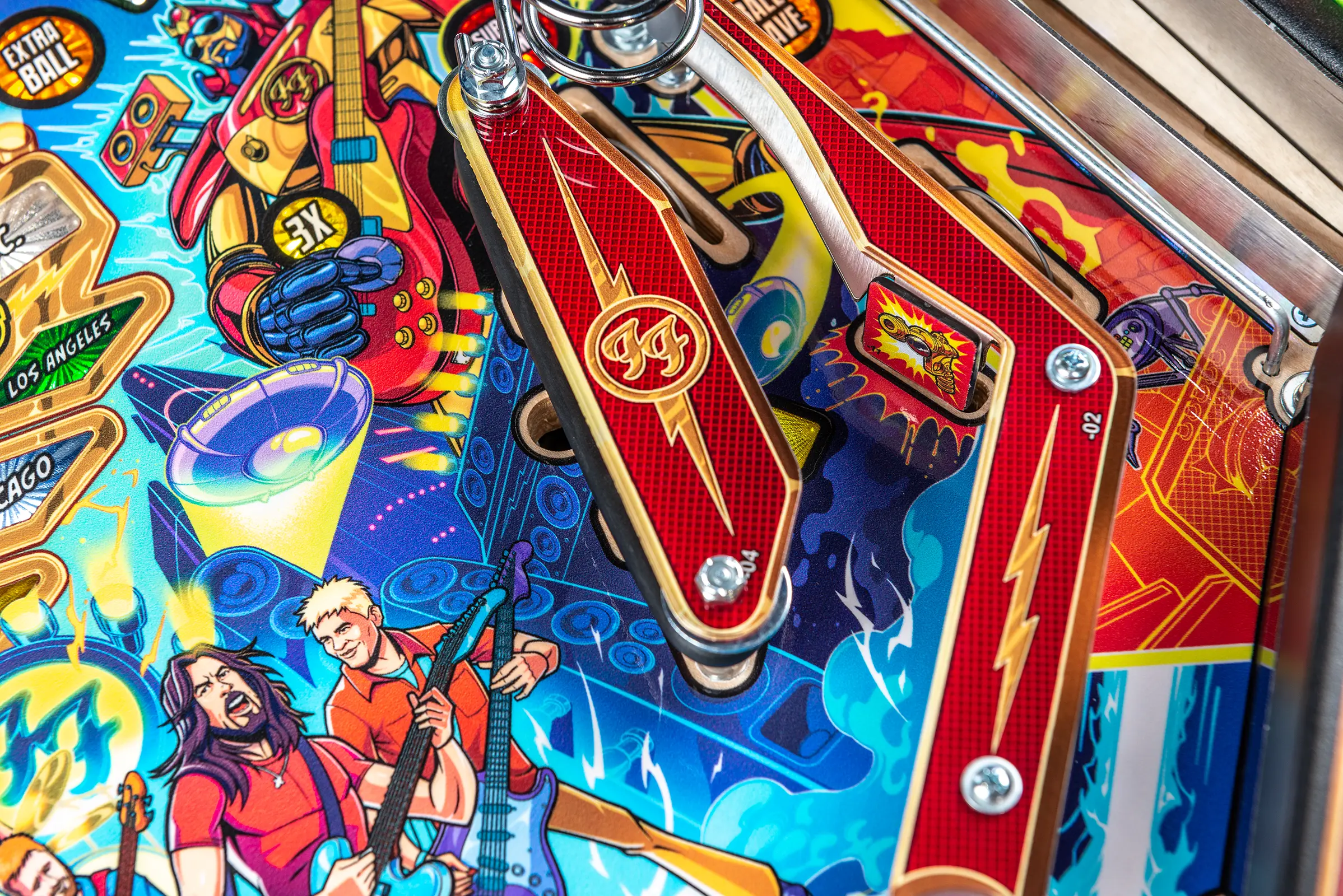 More than two years in the making and with creative input from the band’s own Dave Grohl, Nate Mendel, Pat Smear, Chris Shiflett, Rami Jaffee, and the late, great Taylor Hawkins, Stern’s Foo Fighters is a top-shelf pinball machine—and so much more. An entire new universe has been developed with jaw-dropping hand-drawn artwork and custom animations including “Foo Fighters Saturday Morning Action Time!”—a fictional TV series chronicling the band’s quest to save rock and roll… AND THE WORLD! Join Foo Fighters on this rescue mission to thwart the evil, mysterious alien Overlord and his army of bots. Search the Area 51 upper playfield to break into and unleash pinball chaos. Jump in the van for a righteous tour of duty to save humanity from extinction and let rock rule!