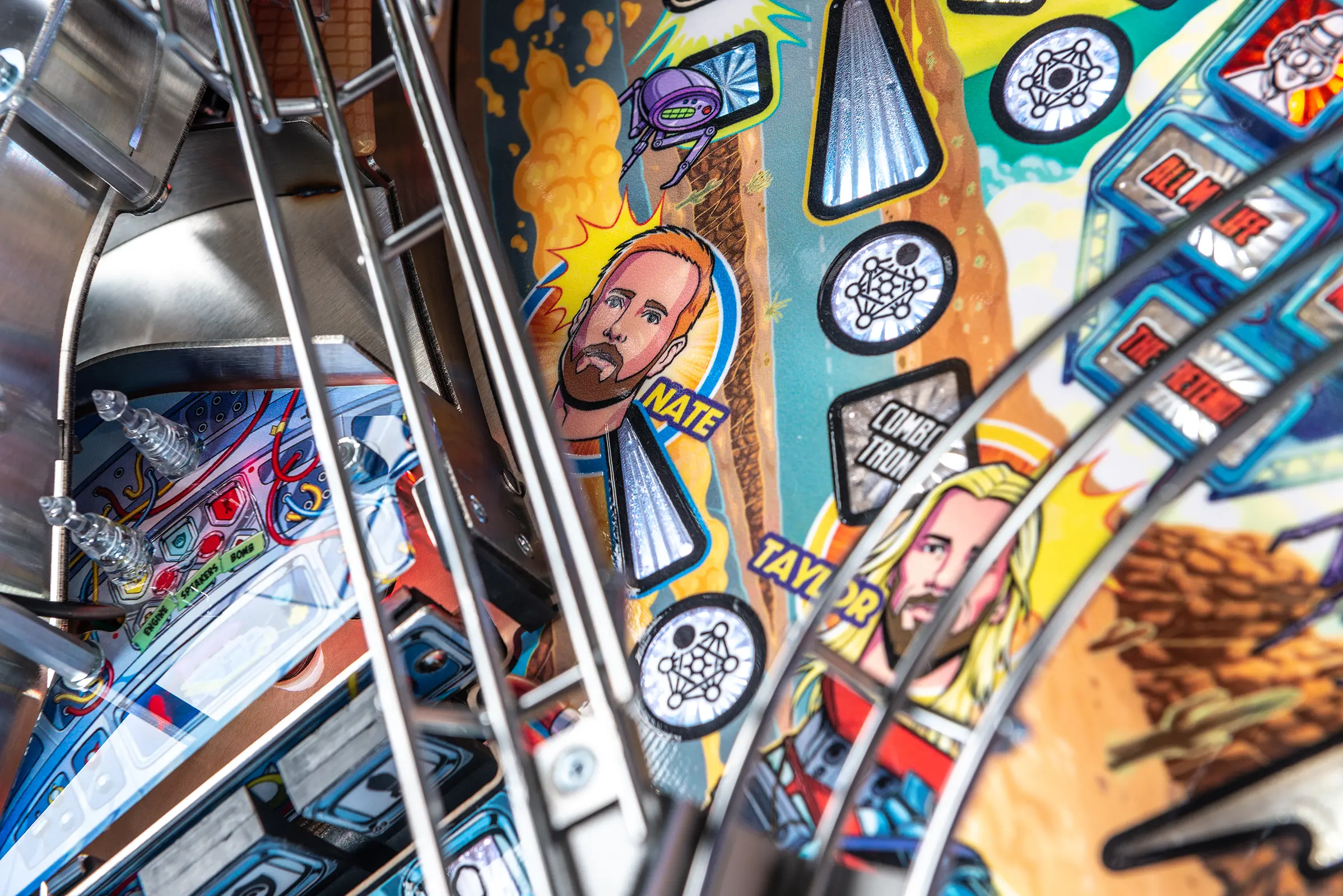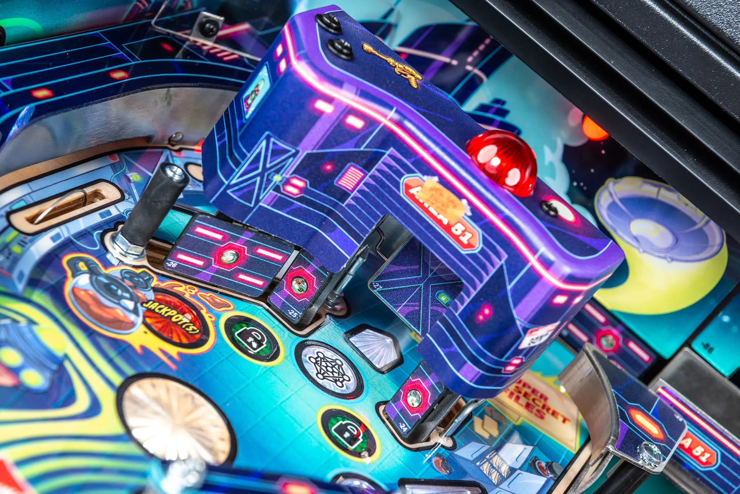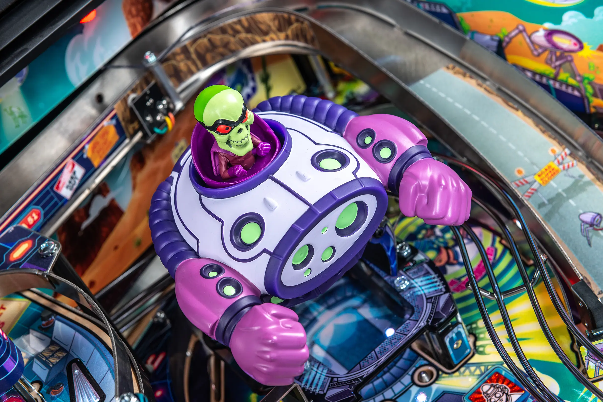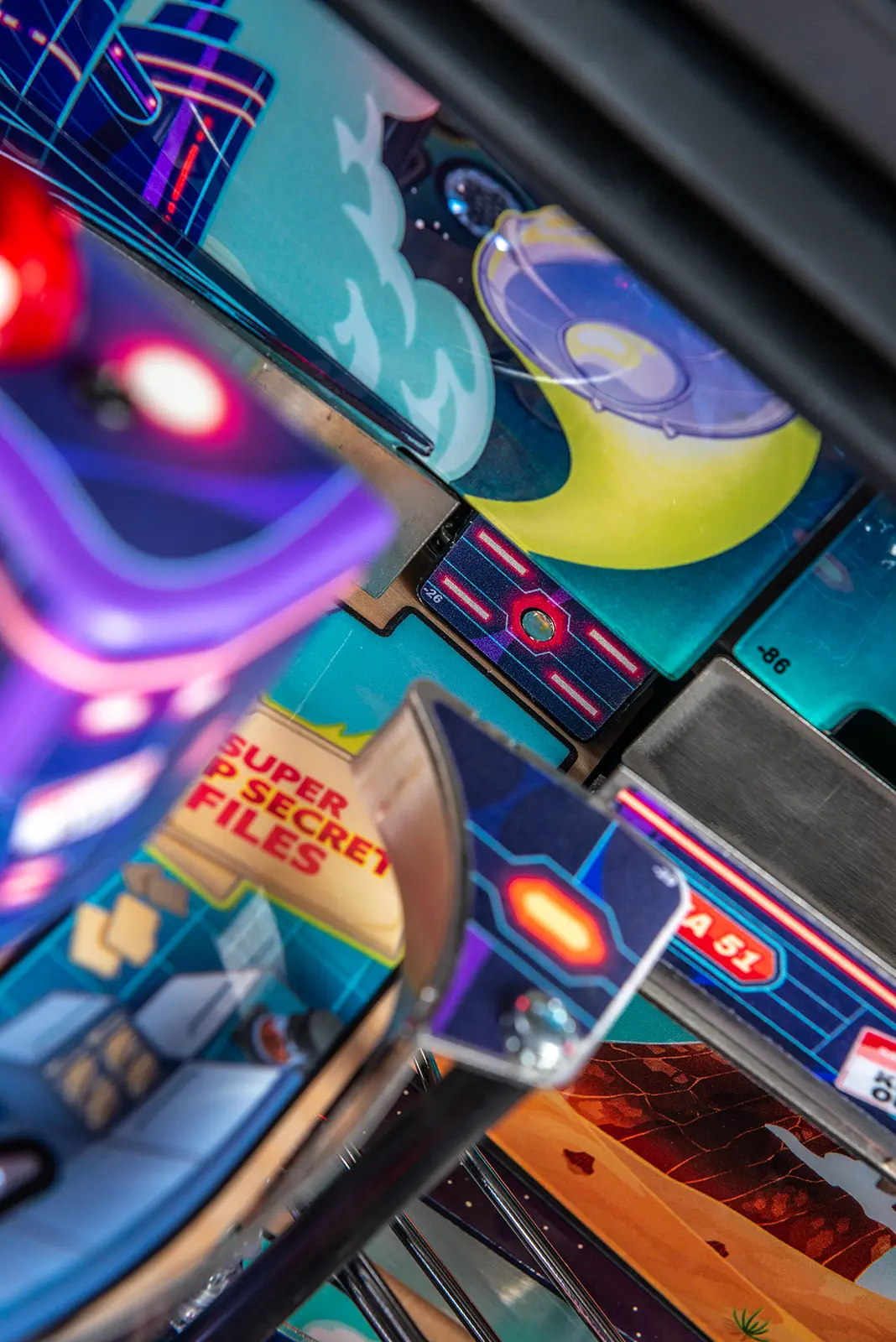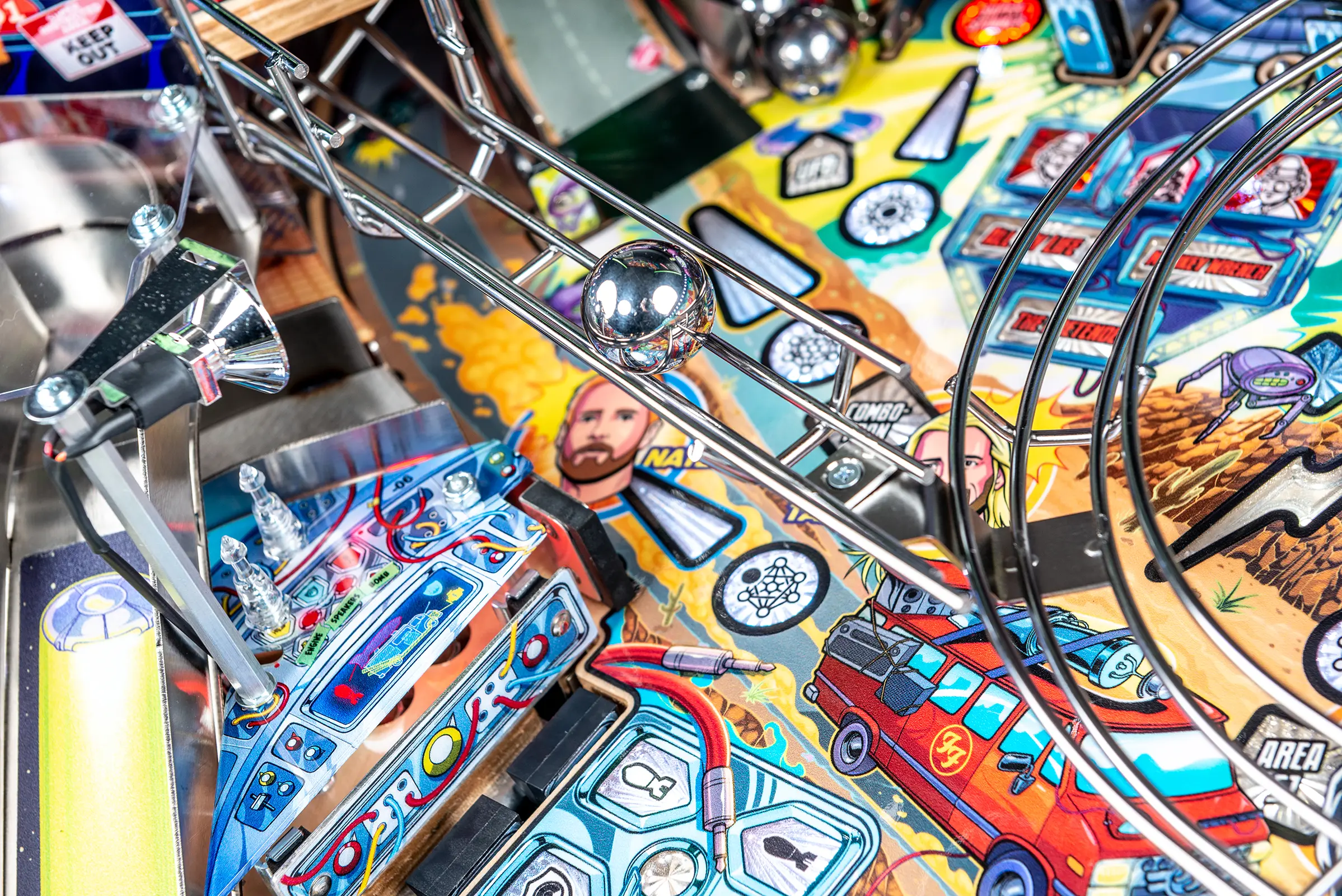 More than two years in the making and with creative input from the band’s own Dave Grohl, Nate Mendel, Pat Smear, Chris Shiflett, Rami Jaffee, and the late, great Taylor Hawkins, Stern’s Foo Fighters is a top-shelf pinball machine—and so much more. An entire new universe has been developed with jaw-dropping hand-drawn artwork and custom animations including “Foo Fighters Saturday Morning Action Time!”—a fictional TV series chronicling the band’s quest to save rock and roll… AND THE WORLD! Join Foo Fighters on this rescue mission to thwart the evil, mysterious alien Overlord and his army of bots. Search the Area 51 upper playfield to break into and unleash pinball chaos. Jump in the van for a righteous tour of duty to save humanity from extinction and let rock rule!