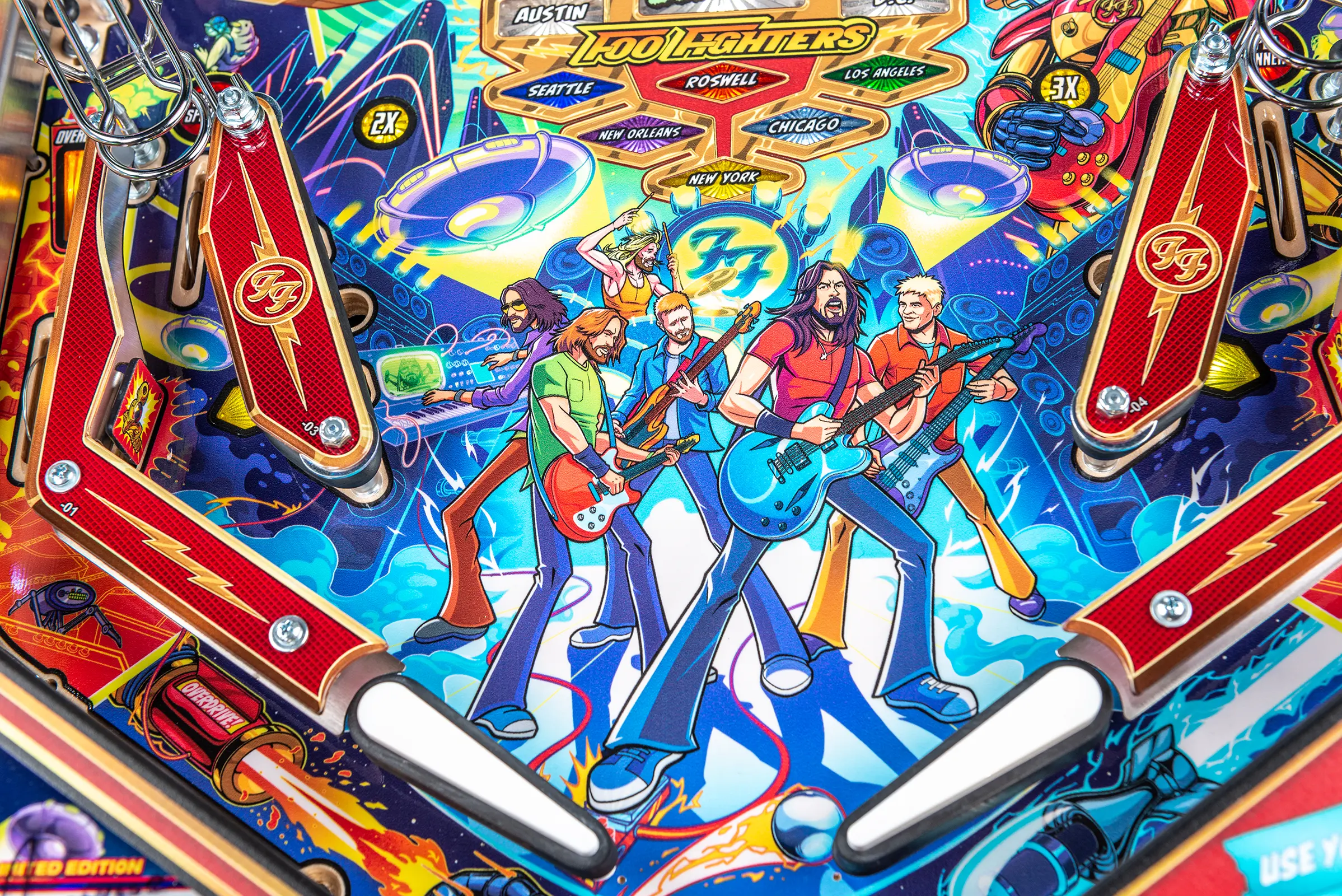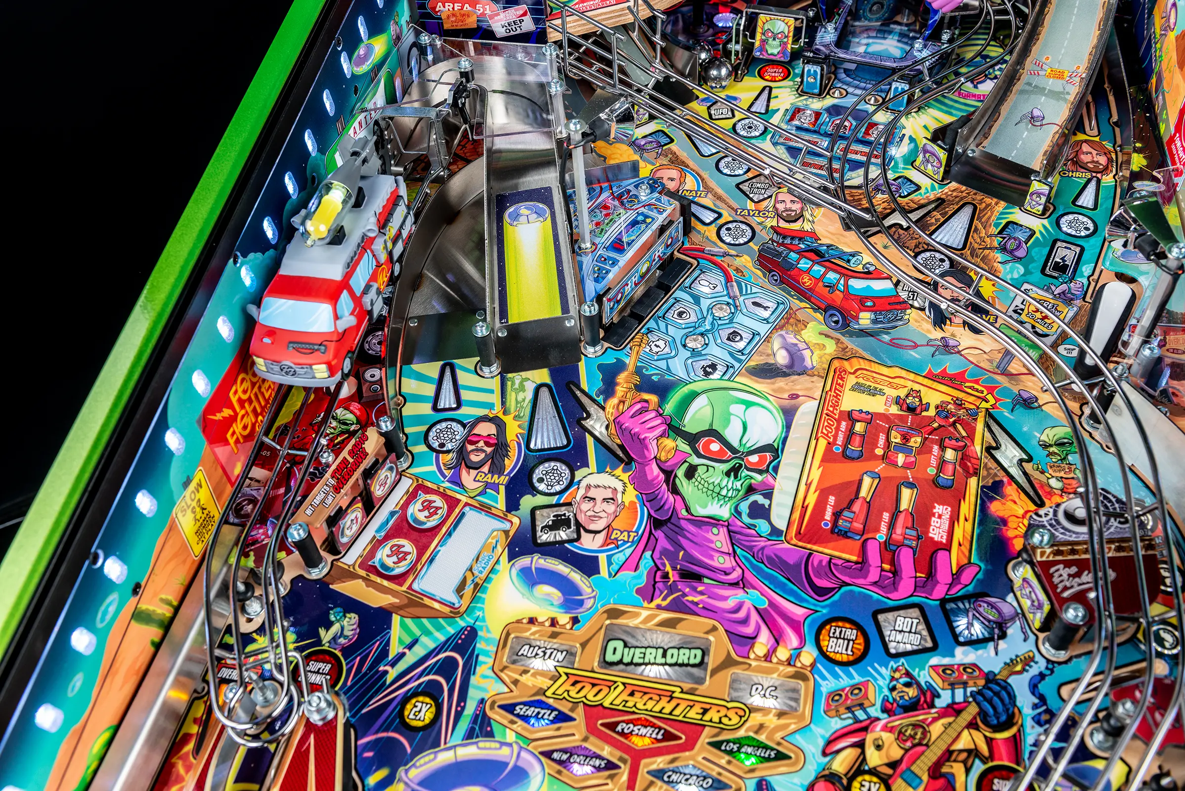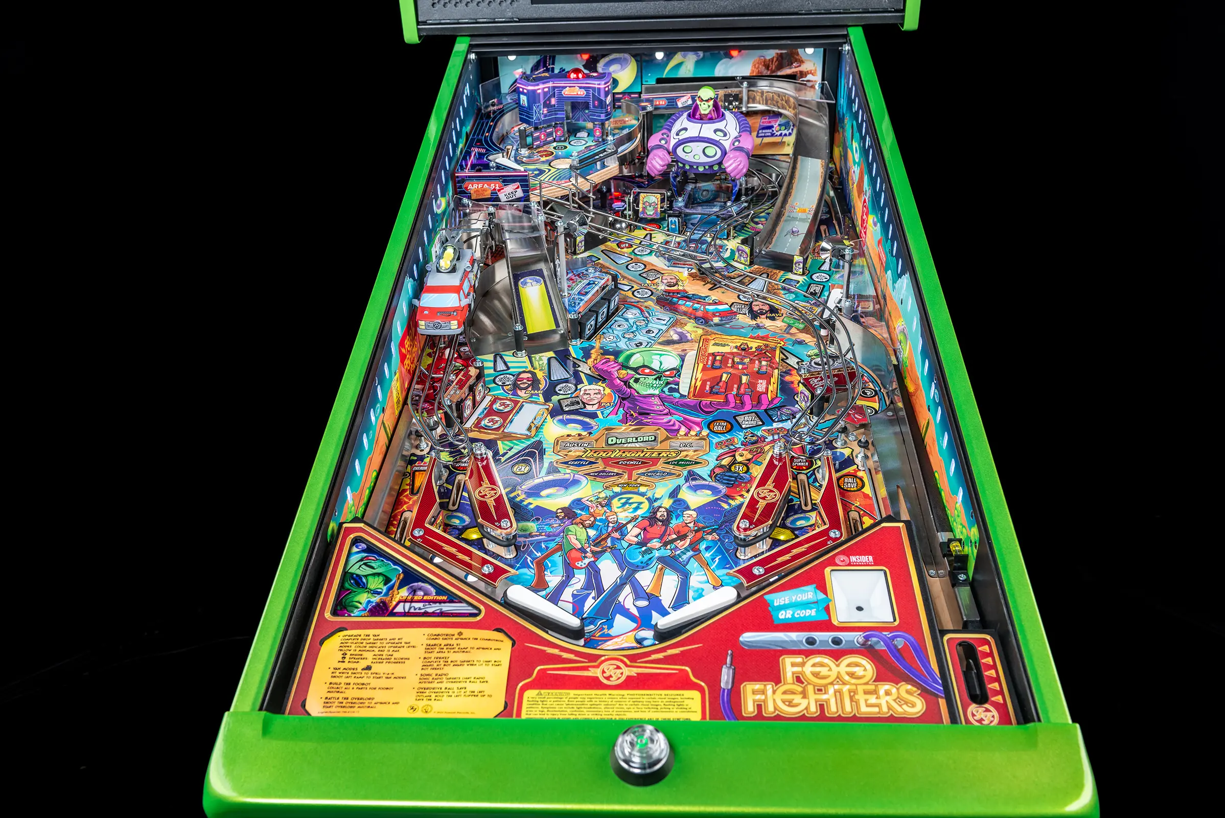 - Limited Edition model features mirrored backglass containing all Foo Fighters band members, the Overlord, and FooBot; illustrated by Zombie Yeti.