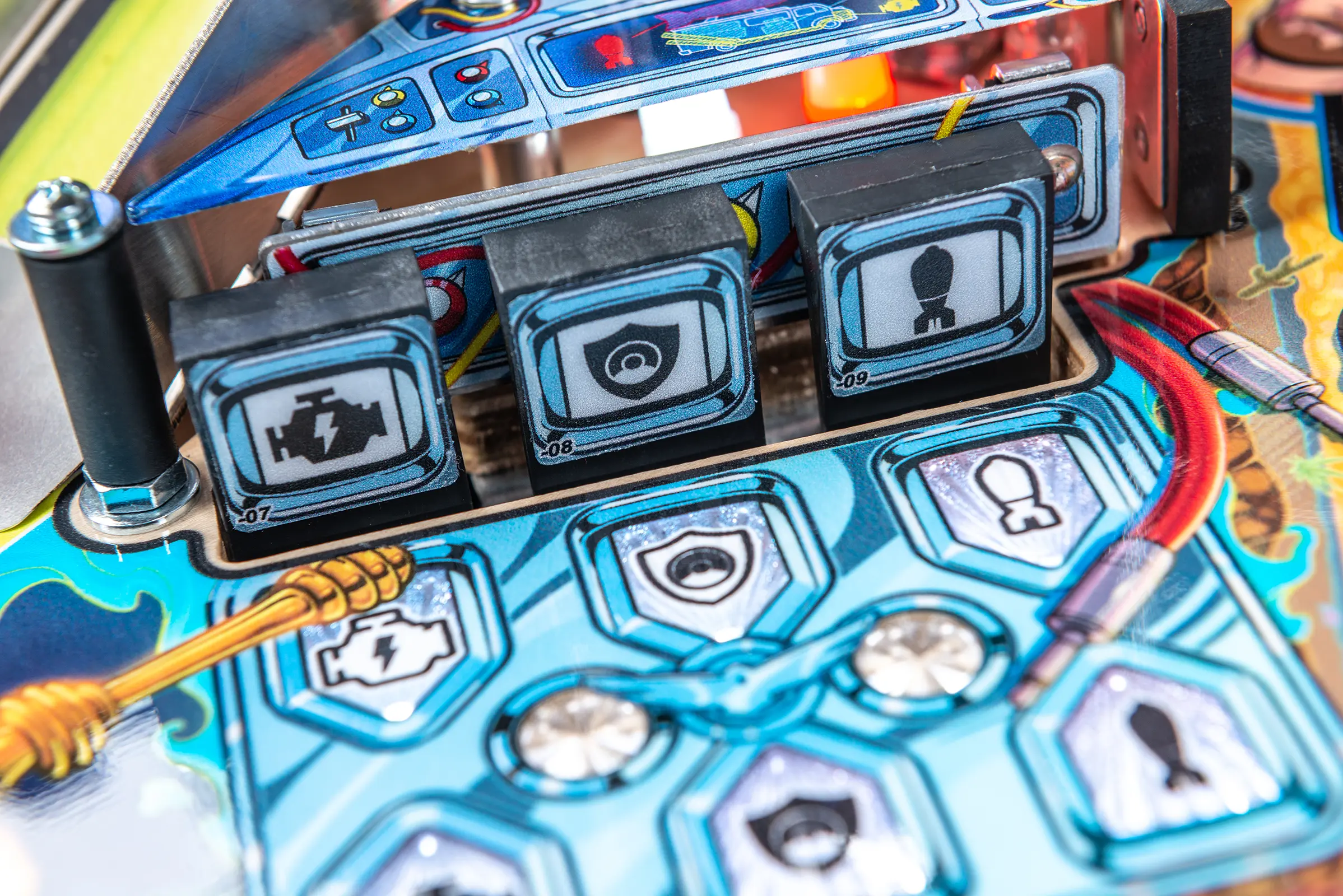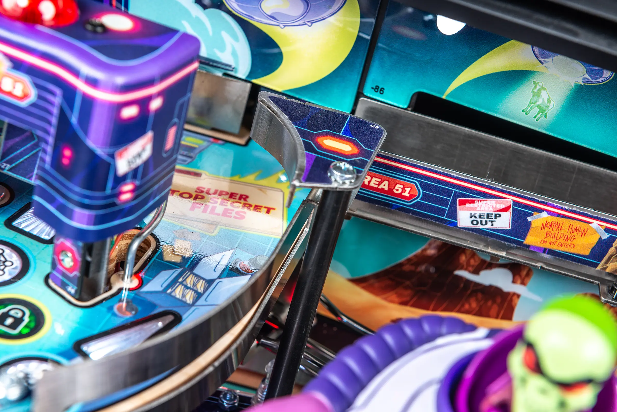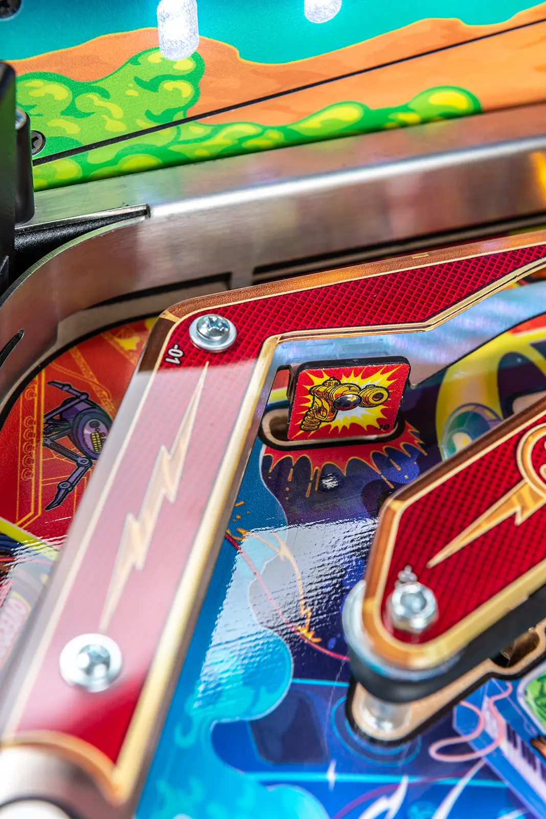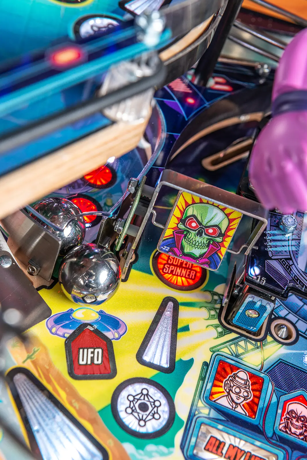 - Custom high gloss "Overlord Green" powder-coated pinball armor, legs, hinges and action button front molding.