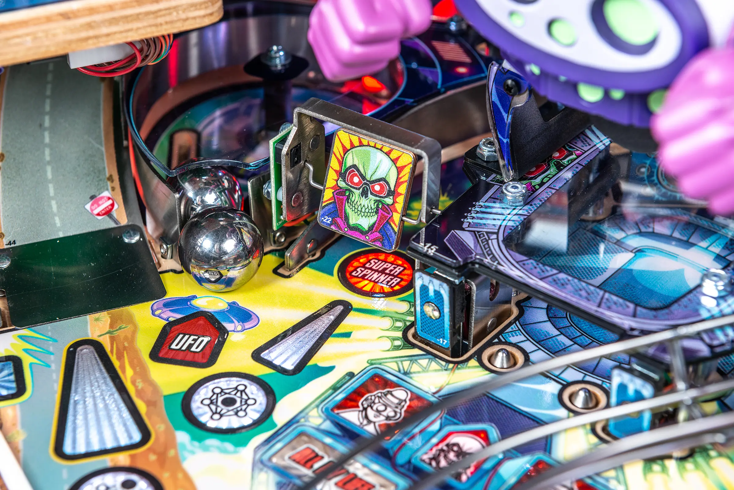 - Alien abduction feature with electro-magnet hidden beneath the "Overlord Arena" with custom sculpted "Overlord" interactive toy.