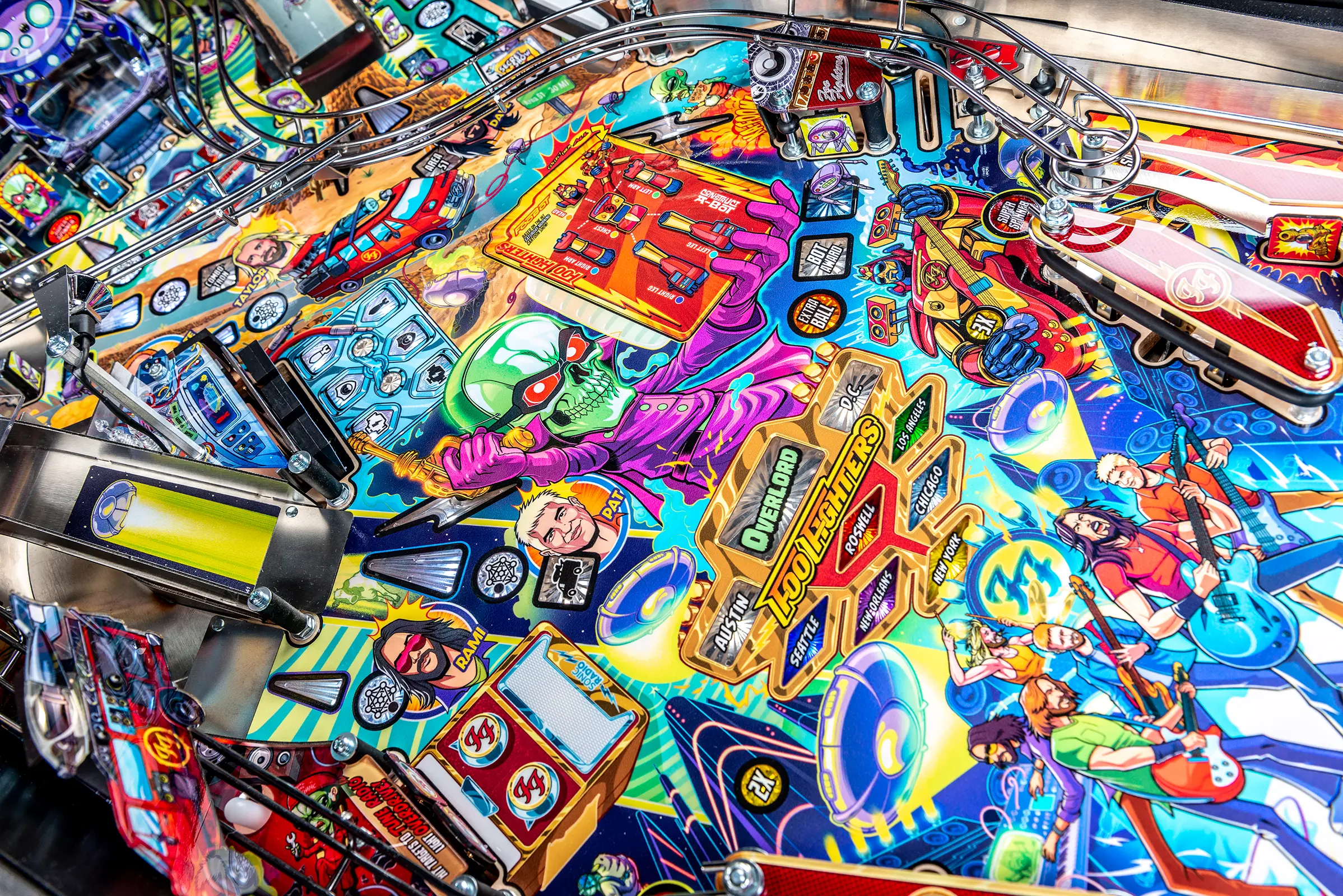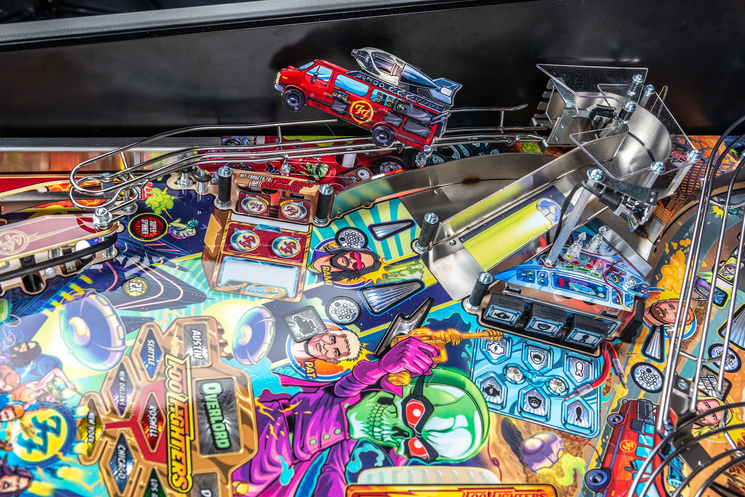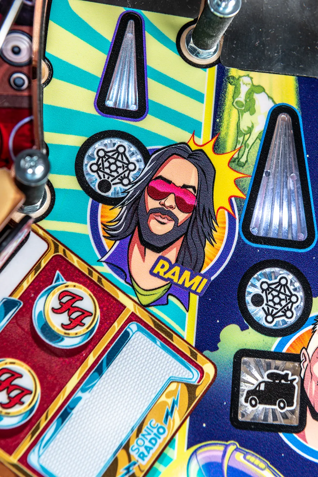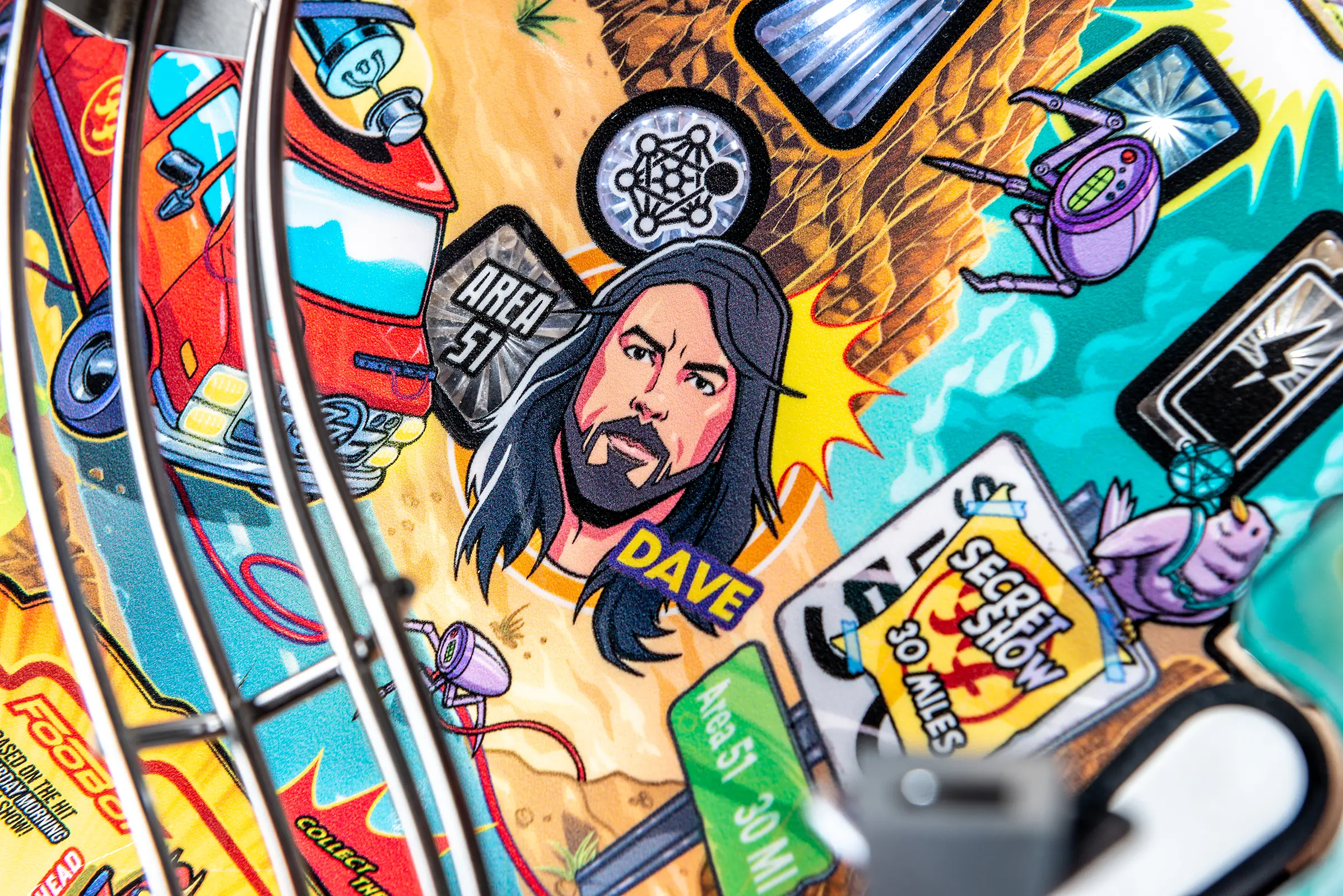 More than two years in the making and with creative input from the band’s own Dave Grohl, Nate Mendel, Pat Smear, Chris Shiflett, Rami Jaffee, and the late, great Taylor Hawkins, Stern’s Foo Fighters is a top-shelf pinball machine—and so much more. An entire new universe has been developed with jaw-dropping hand-drawn artwork and custom animations including “Foo Fighters Saturday Morning Action Time!”—a fictional TV series chronicling the band’s quest to save rock and roll… AND THE WORLD!  Join Foo Fighters on this rescue mission to thwart the evil, mysterious alien Overlord and his army of bots.  Search the Area 51 upper playfield to break into and unleash pinball chaos.  Jump in the van for a righteous tour of duty to save humanity from extinction and let rock rule!