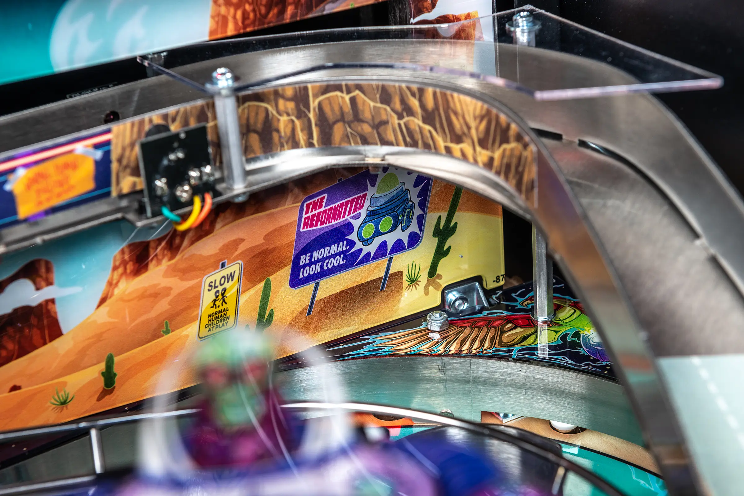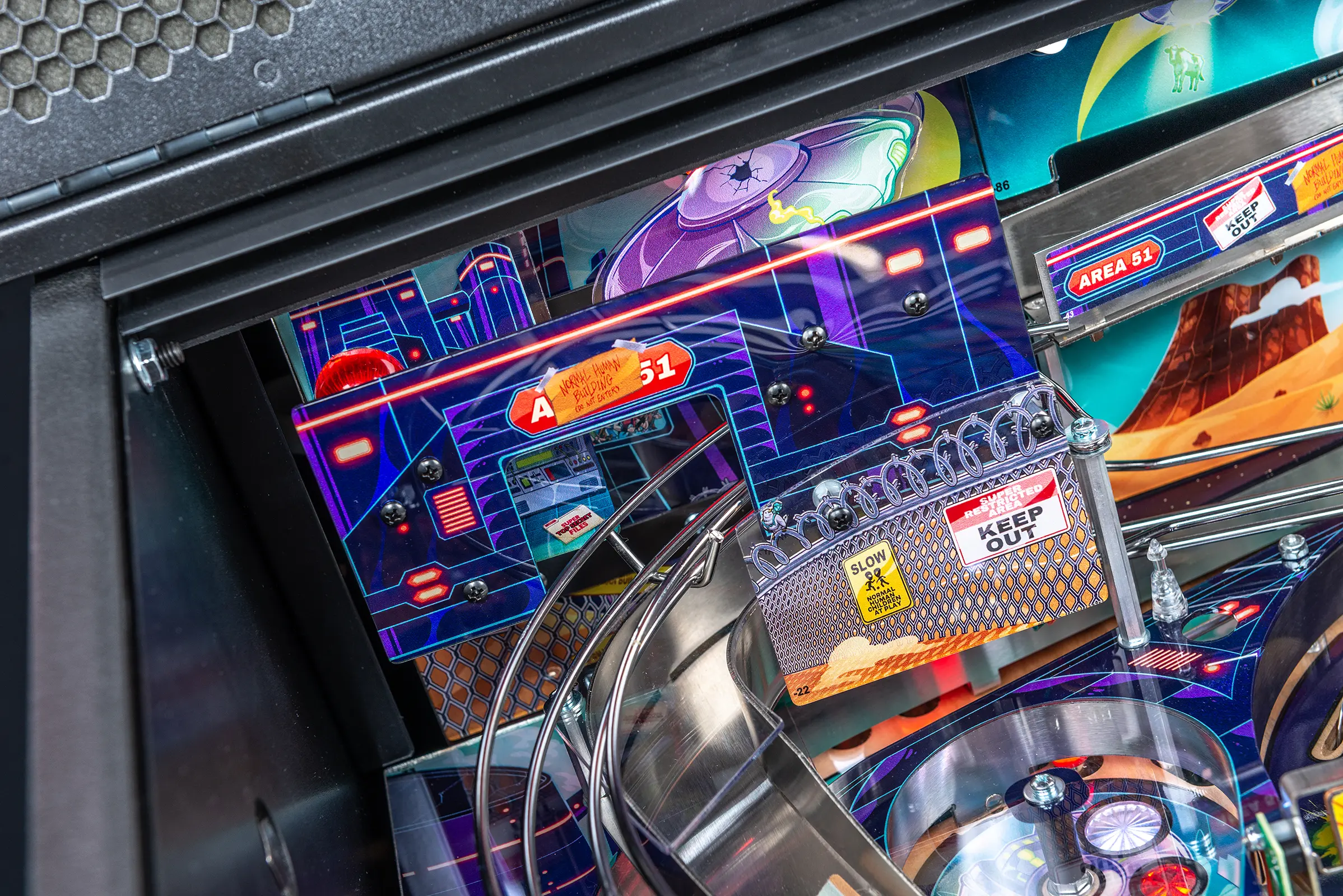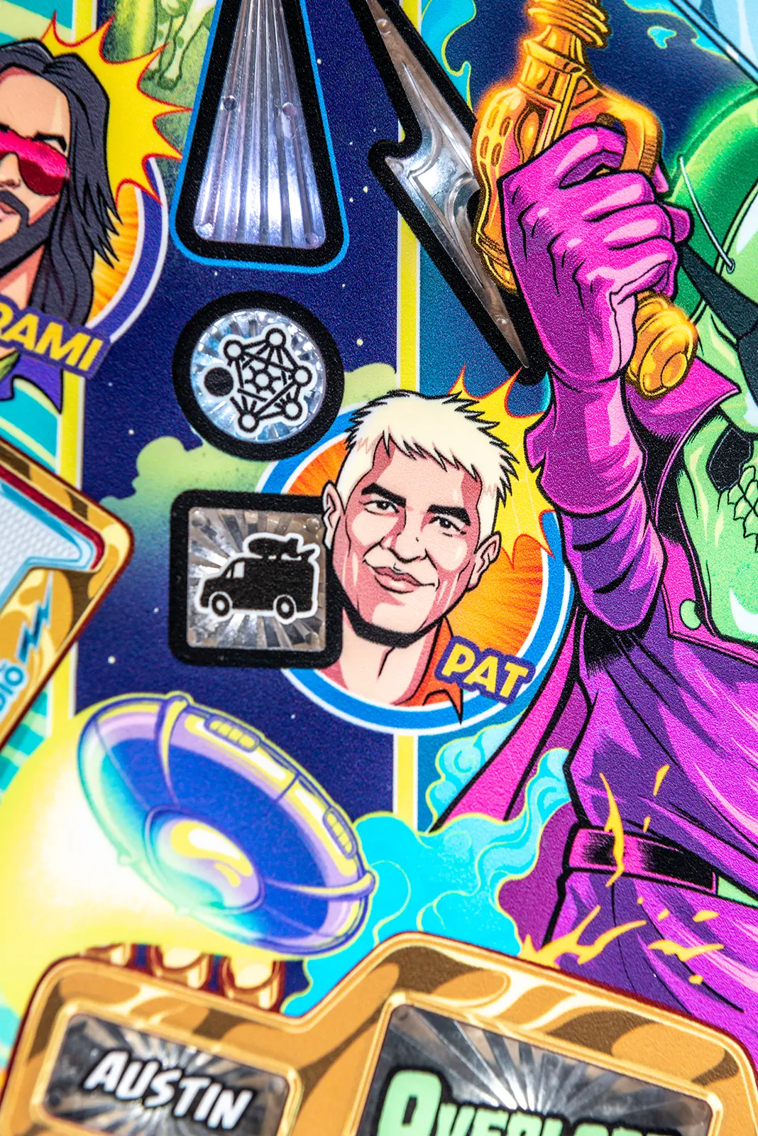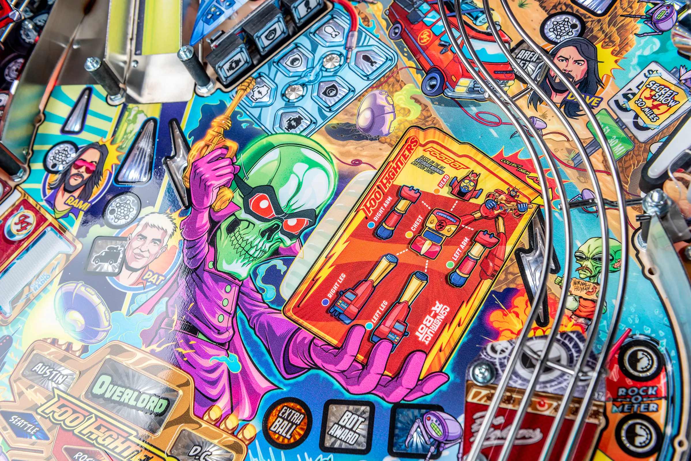 More than two years in the making and with creative input from the band’s own Dave Grohl, Nate Mendel, Pat Smear, Chris Shiflett, Rami Jaffee, and the late, great Taylor Hawkins, Stern’s Foo Fighters is a top-shelf pinball machine—and so much more. An entire new universe has been developed with jaw-dropping hand-drawn artwork and custom animations including “Foo Fighters Saturday Morning Action Time!”—a fictional TV series chronicling the band’s quest to save rock and roll… AND THE WORLD!  Join Foo Fighters on this rescue mission to thwart the evil, mysterious alien Overlord and his army of bots.  Search the Area 51 upper playfield to break into and unleash pinball chaos.  Jump in the van for a righteous tour of duty to save humanity from extinction and let rock rule!