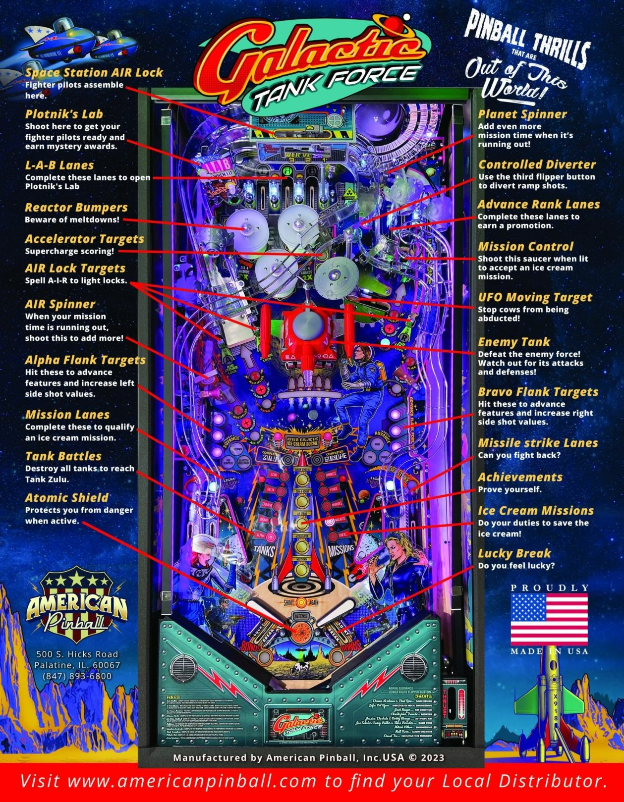 Get ready for an out-of-this-world Adventure as American Pinball unleashes "Galactic Tank Force" on March 22nd, 2023! With live actors, cutting-edge graphics and gripping gameplay, these cosmic exploits guarantee non-stop laughs, thrills, and excitement for pinball fans everywhere!