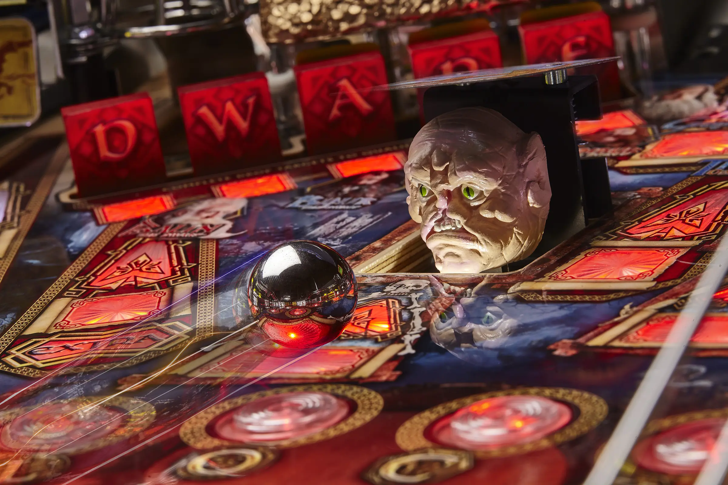 Audio from a 7-speaker stereo system pairs with enhanced visuals to draw you into the quest. The machine's unique attract mode and animated sequences bring the battle for the Five Armies to life. For players who love a bold design with powerful features, the Black Arrow is a worthy addition to any collection.