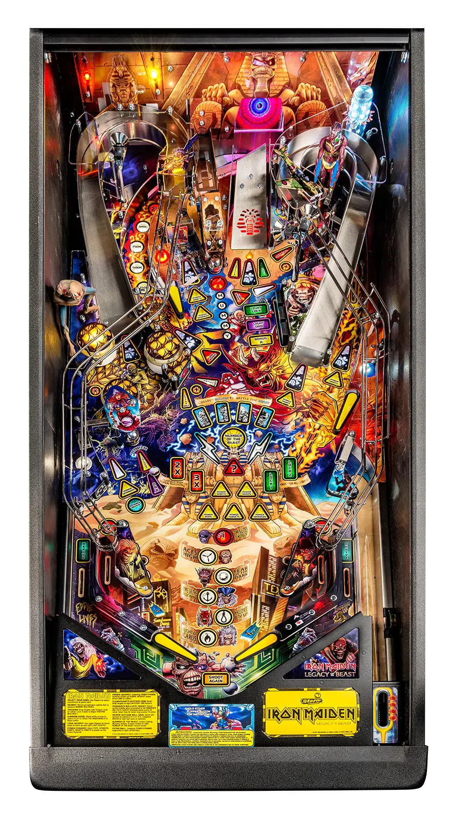 The Iron Maiden pinball machines aim to reflect the same excitement, energy, and experience of a live Iron Maiden concert. Players will immerse themselves in an interactive Iron Maiden universe transforming into various forms of Eddie, the band’s legendary mascot. Players, as Eddie, will embark on a quest to defeat the Beast and his minions across the Legacy of the Beast mobile game and comic book world. Iron Maiden pinball entertains with an amazing array of modern and classic features, making it suitable for all skill levels.