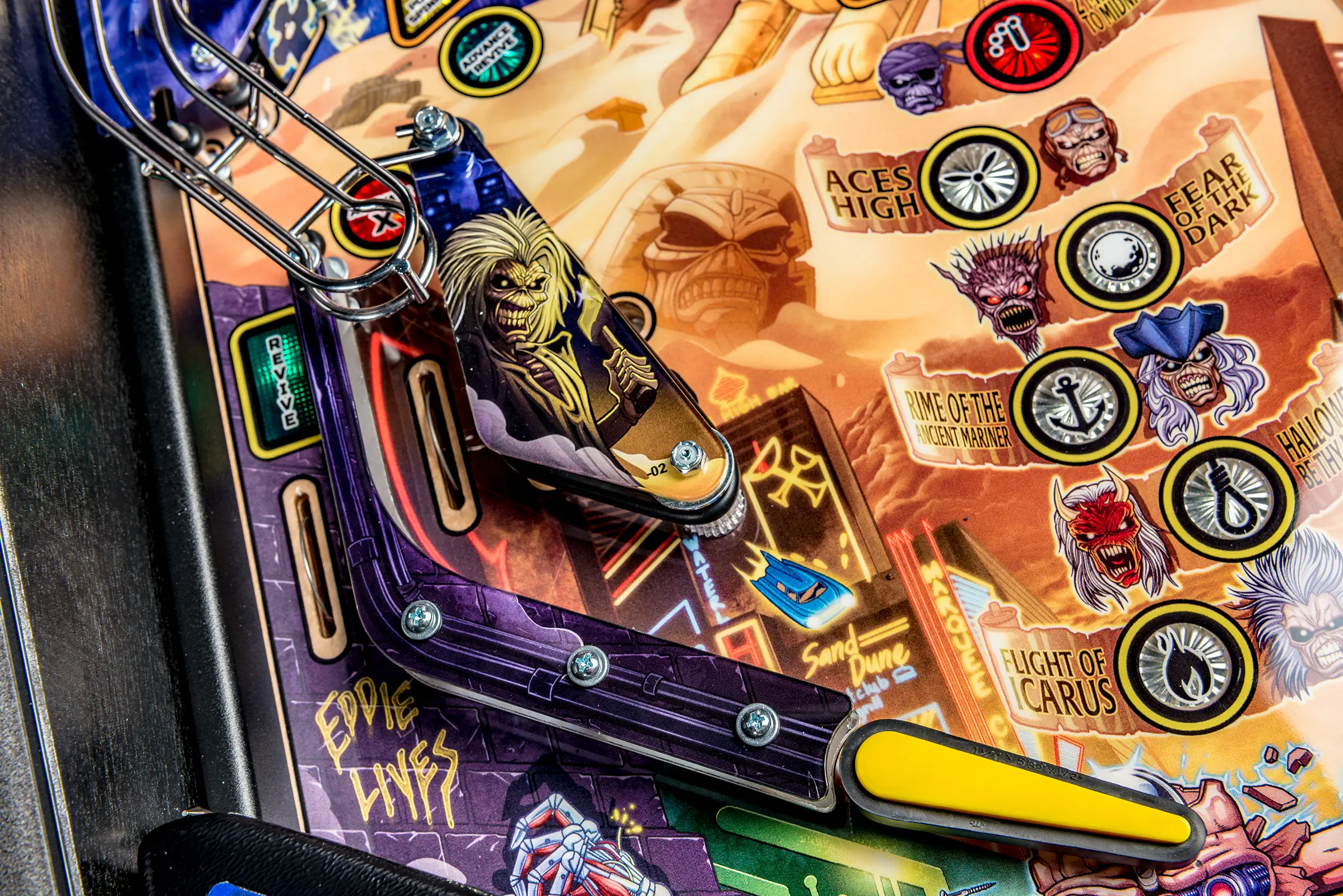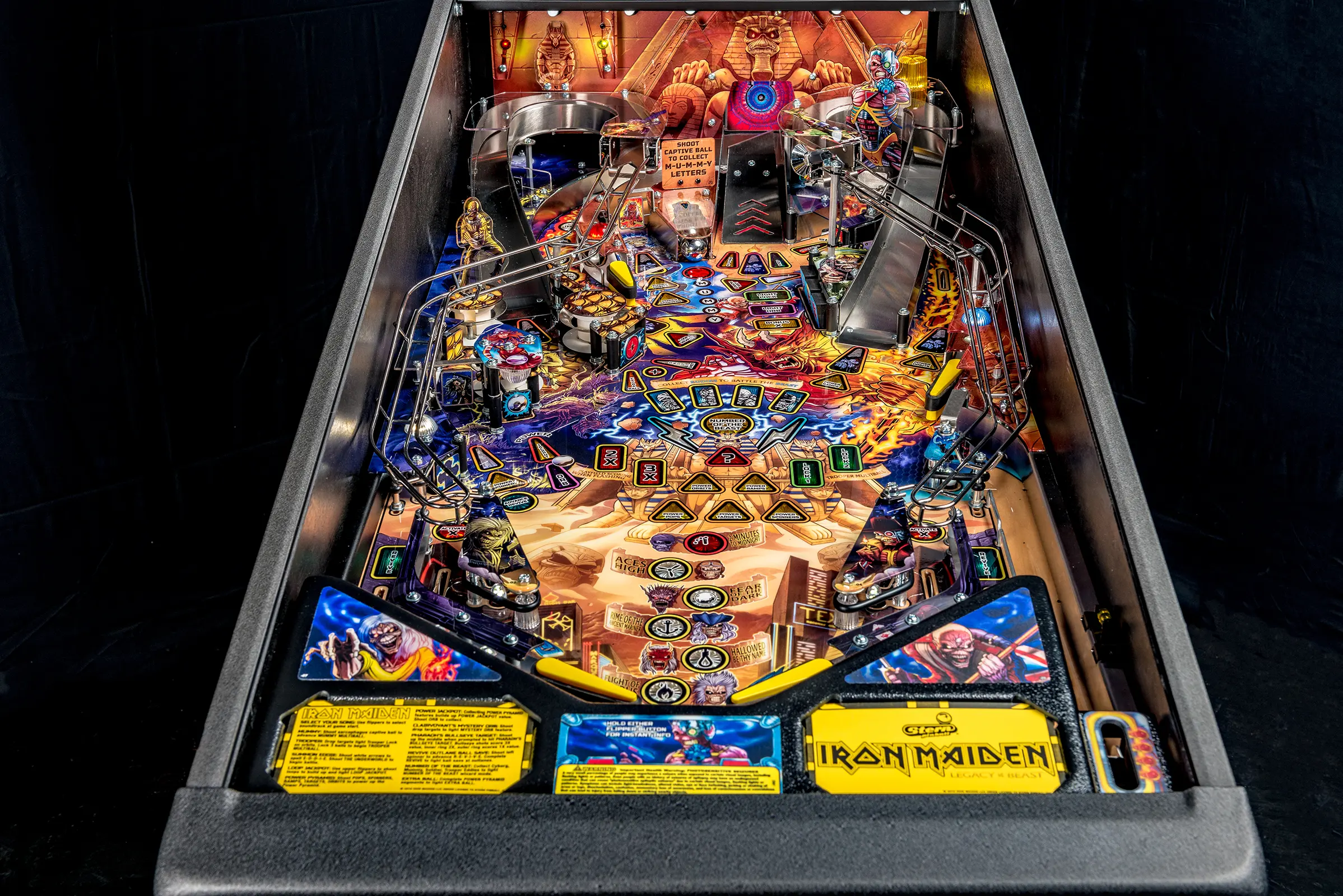 The Iron Maiden pinball machines aim to reflect the same excitement, energy, and experience of a live Iron Maiden concert. Players will immerse themselves in an interactive Iron Maiden universe transforming into various forms of Eddie, the band’s legendary mascot. Players, as Eddie, will embark on a quest to defeat the Beast and his minions across the Legacy of the Beast mobile game and comic book world. Iron Maiden pinball entertains with an amazing array of modern and classic features, making it suitable for all skill levels.
