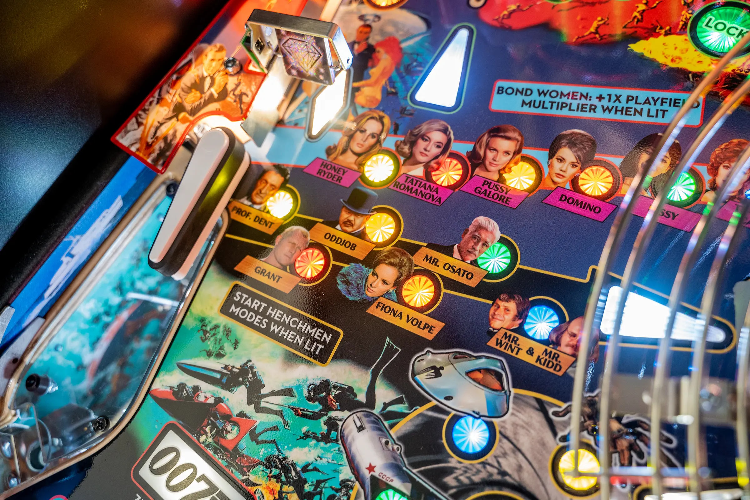 Stern’s James Bond 007 cornerstone pinball machine will highlight film footage and iconic music from the films that built the 007 legend: Dr. No, From Russia With Love (1963), Goldfinger (1964), Thunderball (1965), You Only Live Twice (1967), and Diamonds Are Forever (1971). Players are immersed into the world of espionage in this action-packed pinball experience, tackling assignments, teaming up with key allies, and stopping SPECTRE’s villainous schemes.