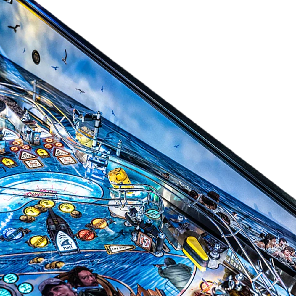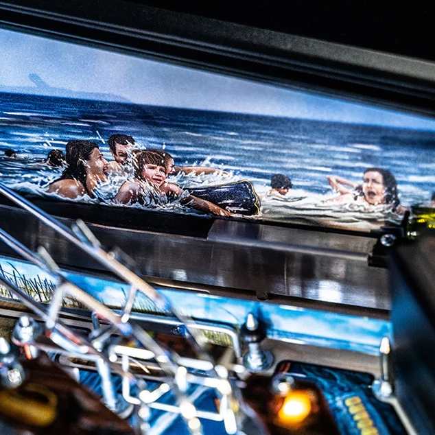 Fully dress up the inside of your game with the official JAWS Inside Art Blades. Featuring stunning and distinctive hand-drawn artwork by Michael Barnard, these art blades add an entirely new dimension inside this world under glass pinball experience highlighting iconic shark beach attack scenes.